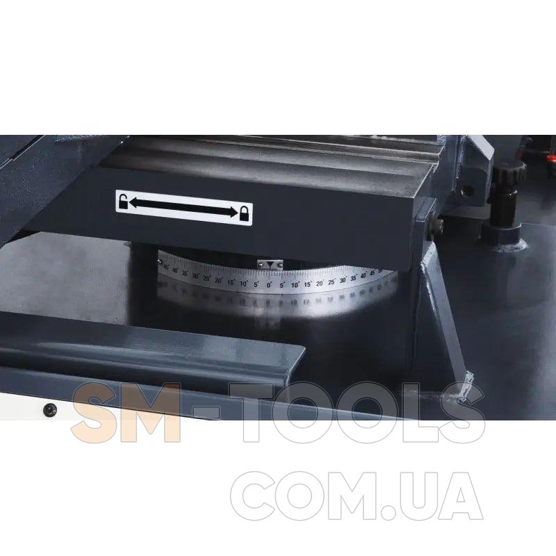 Вбудована система охолодження з ванною та насосом підтримує стабільну роботу, навіть під час тривалого різання. Лещата забезпечують надійну фіксацію деталей, регулюються з обох сторін і дозволяють швидко та легко працювати з різними заготовками. Посилена черв'ячна передача з бронзовими елементами гарантує тривалий термін служби пристрою, а міцний чавунний корпус знижує вібрації.