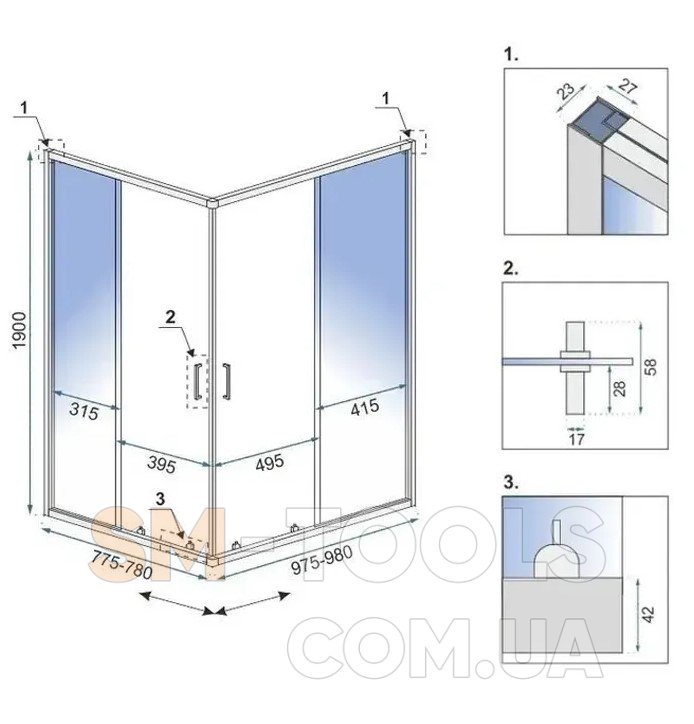 Характеристики Душова кабіна REA CITY 80х100 кабіни : кутовий