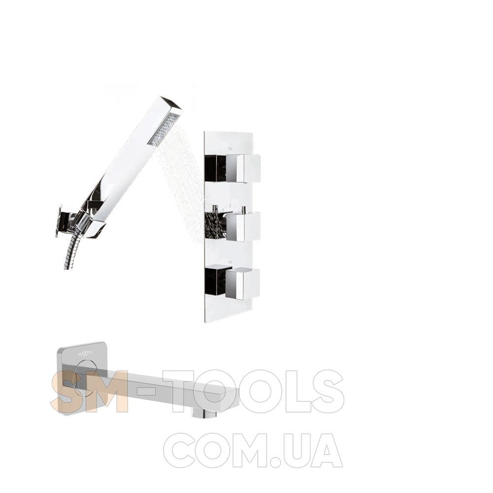 Сучасний набір прихованого монтажу для ванної з виливом та термостатичним змішувачем. Дизайн набору відповідає останнім тенденціям - він виглядає дуже елегантно і чудово вписується в сучасну ванну кімнату.