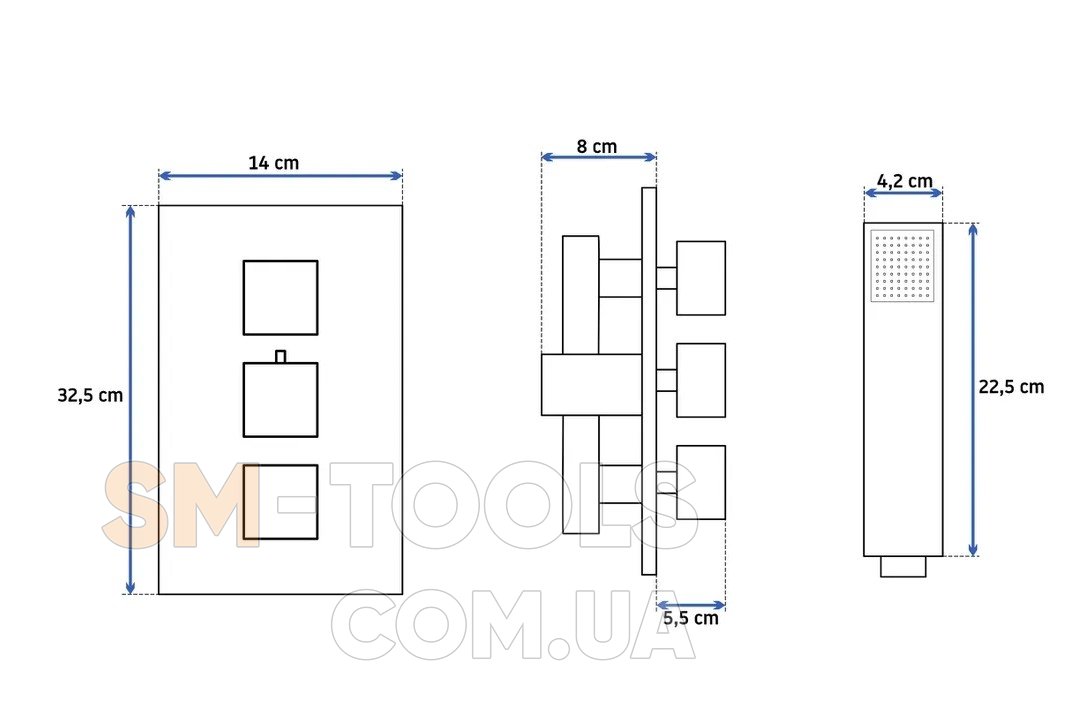 Опис Змішувач для ванни та душу REA BRITO CHROME з термостатом + BOX прихованого монтажу
