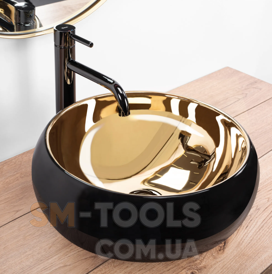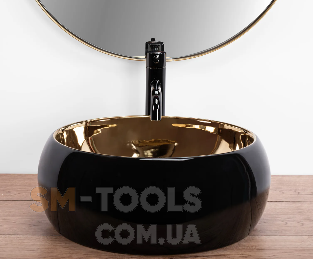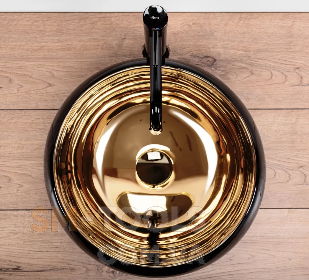 Опис Умивальник (раковина) REA LUNA BLACK MATT GOLD накладний *