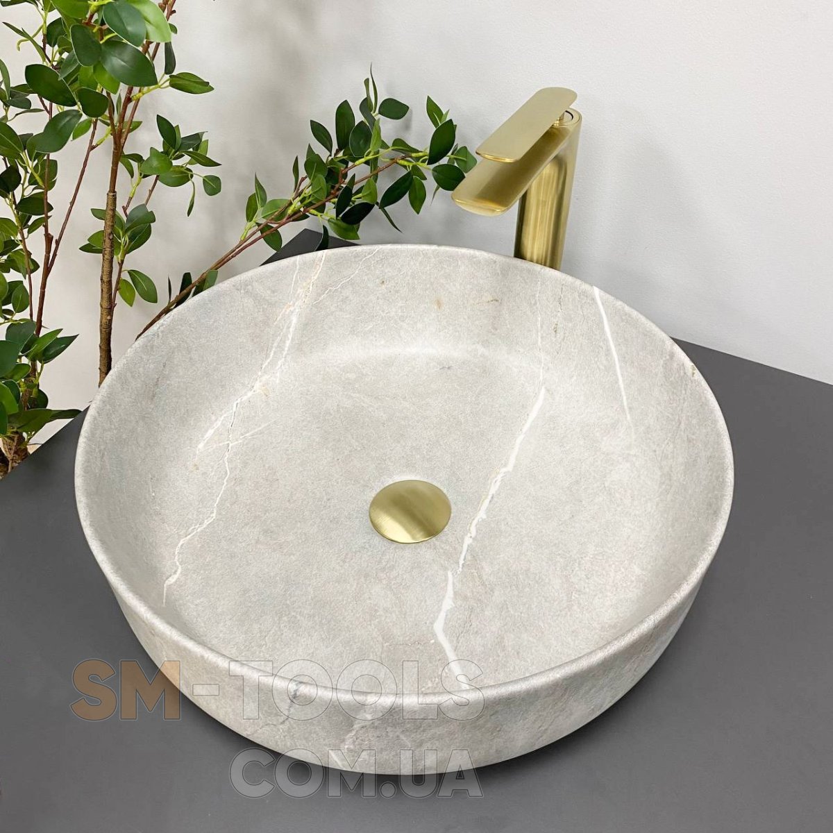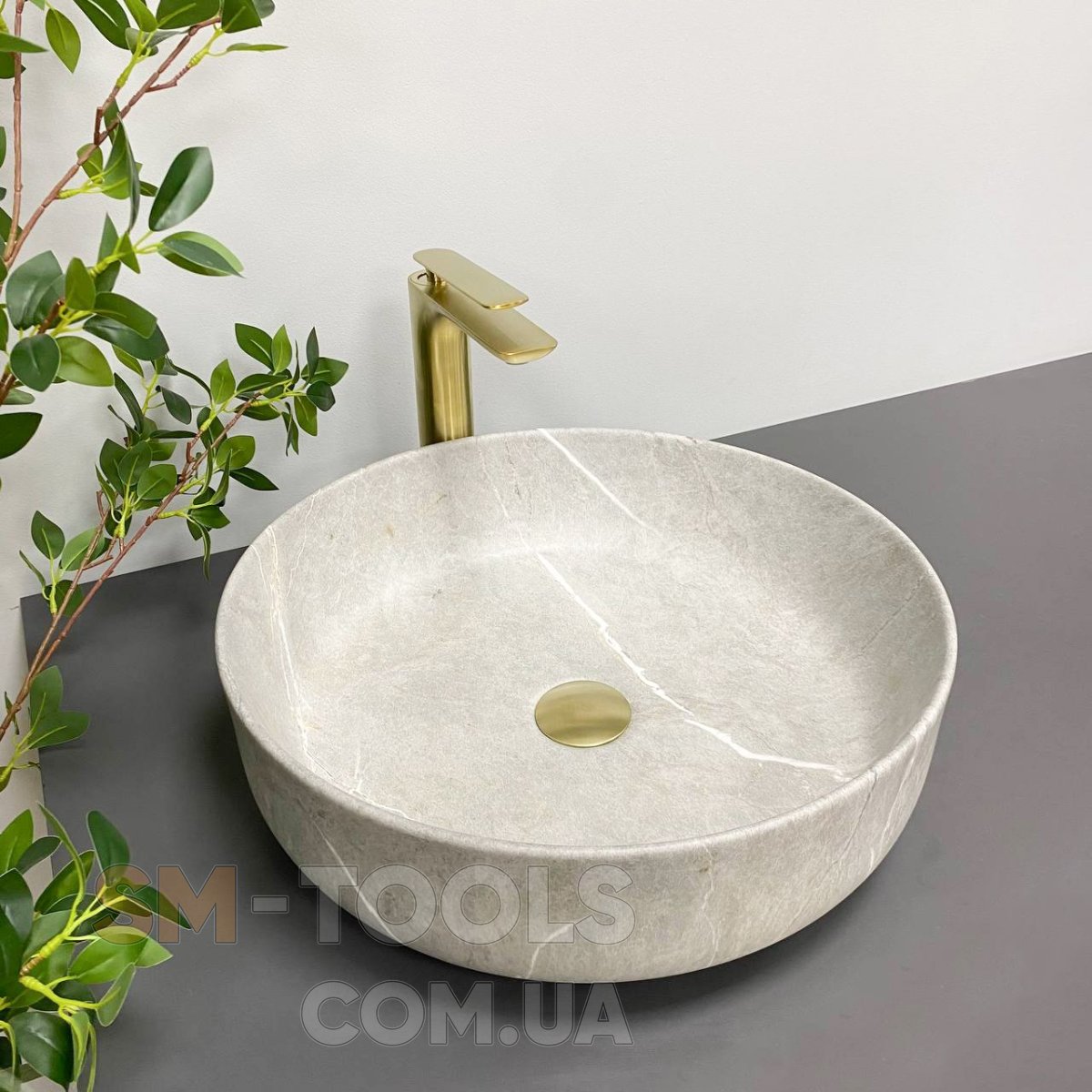 Накладні раковини серії VBI BARI мають високий попит і доступні в різних кольорах у глянсовому або матовому виконанні. Витончений обідок із прямими стінками та делікатне закруглення біля основи надають раковині легкості. А ідеальна кругла форма раковини надає неперевершеного вигляду. Модель VBI BARI GRAY STONE - має унікальний малюнок з імітацією справжнього каменю, а матове покриття додає привабливості. >Форма раковини : кругла