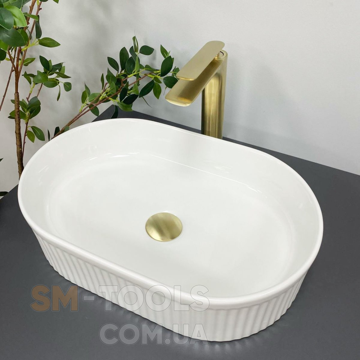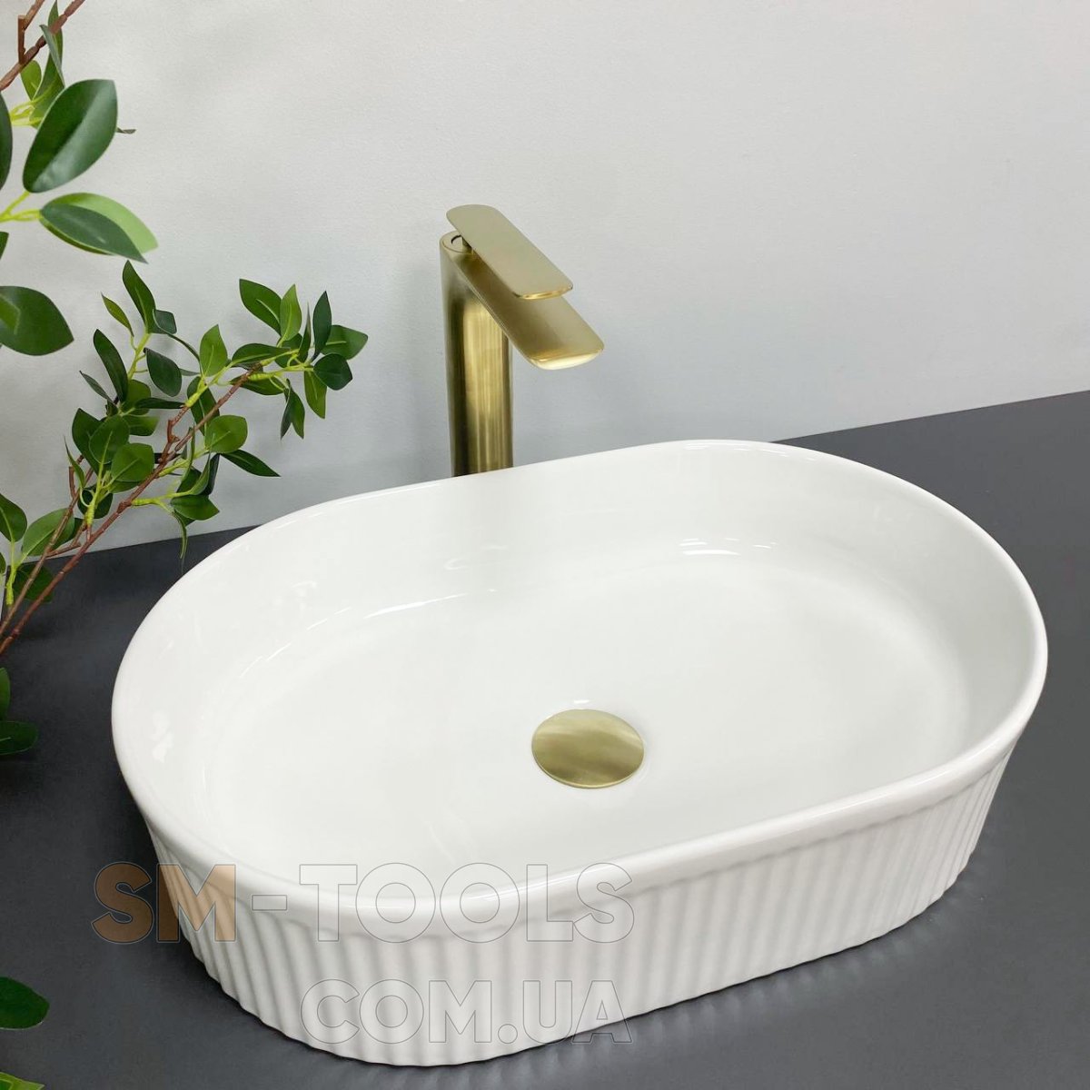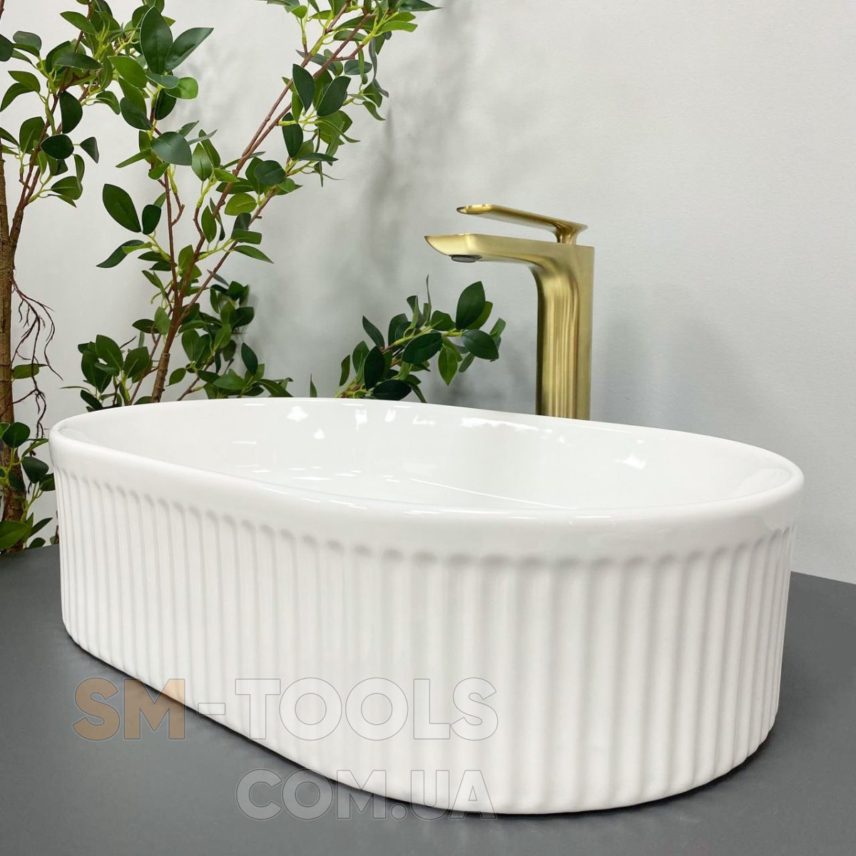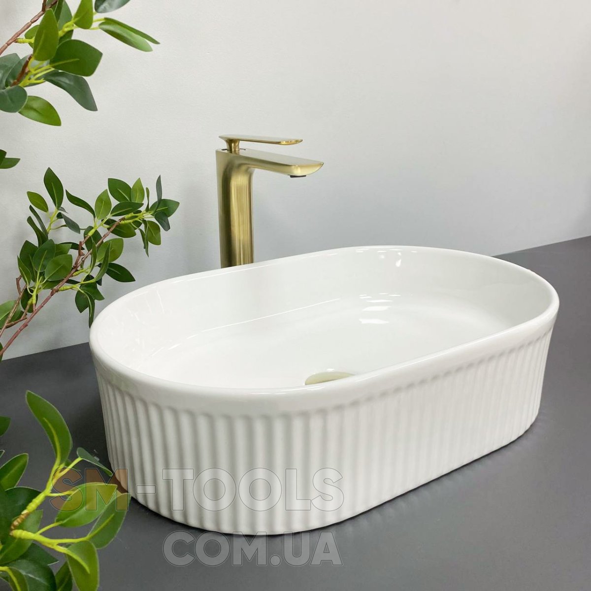 Накладні раковини серії VBI BIELLA мають високий попит і доступні в білому глянсовому виконанні. Раковина овальної форми, гладка всередині, а зовні має рифлену текстуру, що надає сучасного вигляду. Призначена для установки на стільницю і виготовлена з високоякісної кераміки. : кераміка