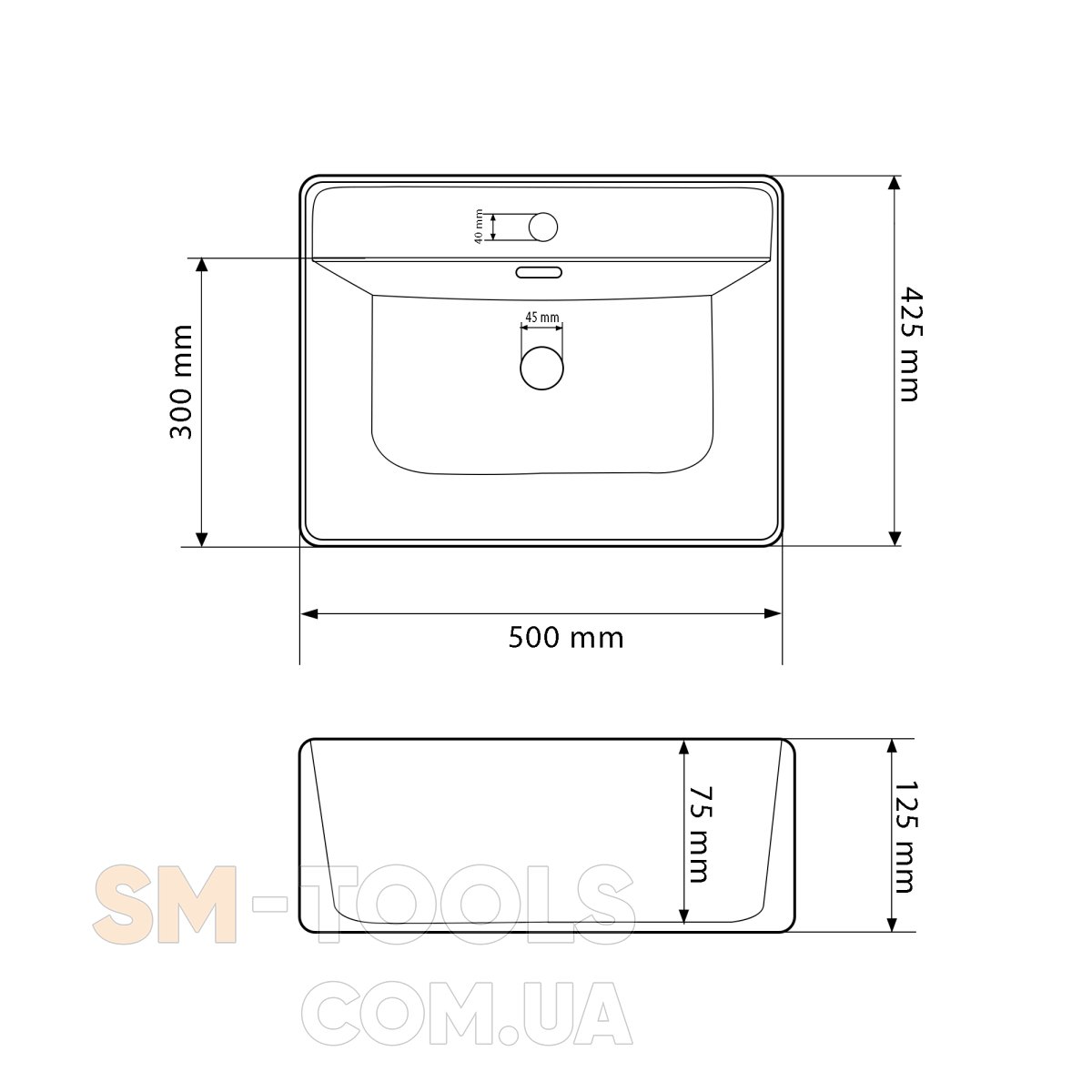 Ширина раковини : від 41 до 50 см<