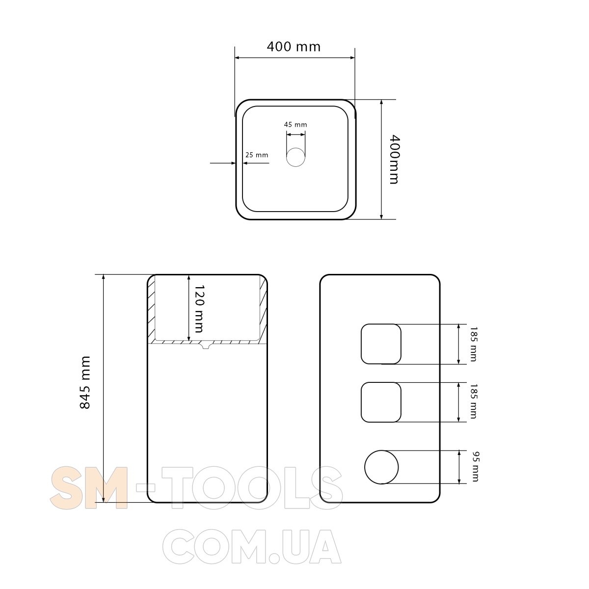 Наявність отвору для переливу: ні