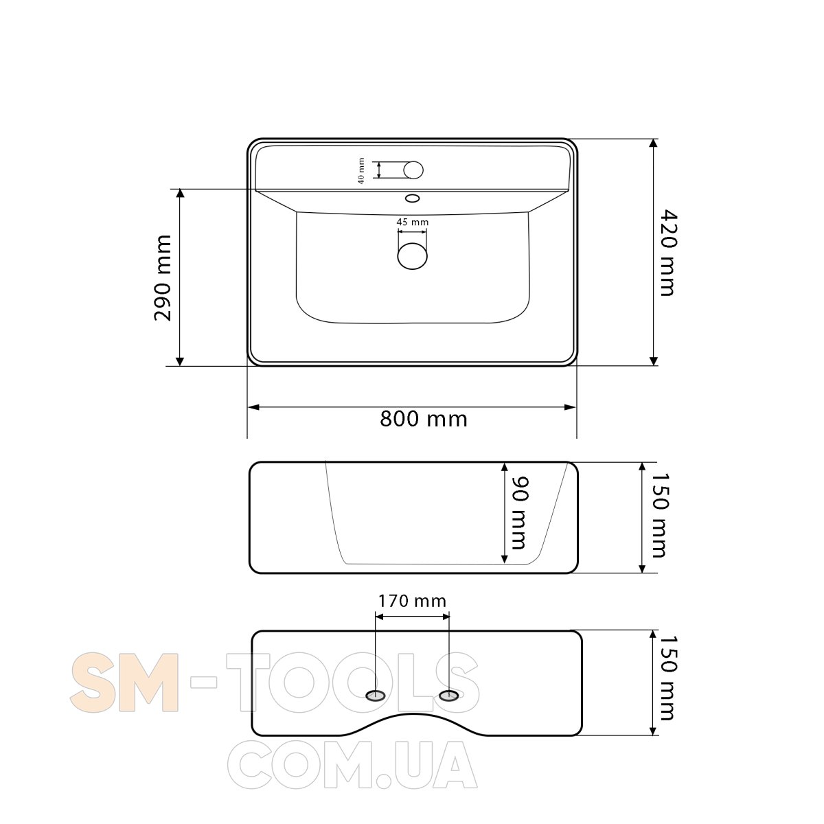 Опис Умивальник (раковина) VBI PADUA 80 WHITE накладний підвісний