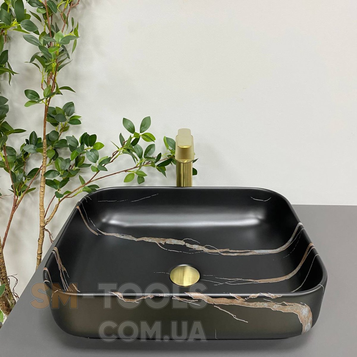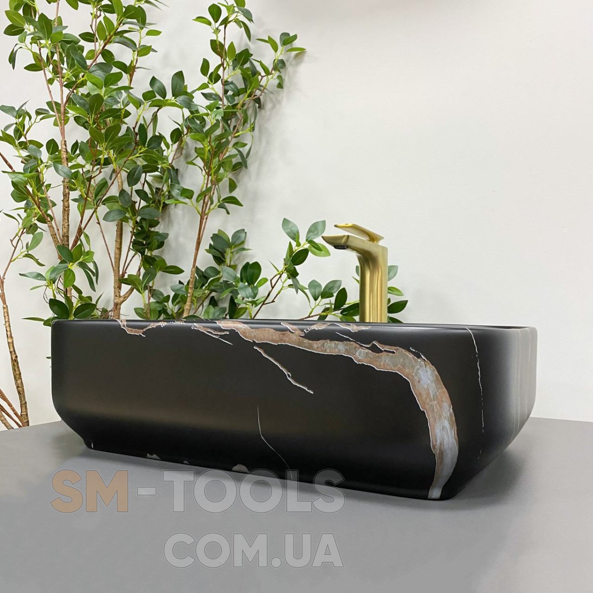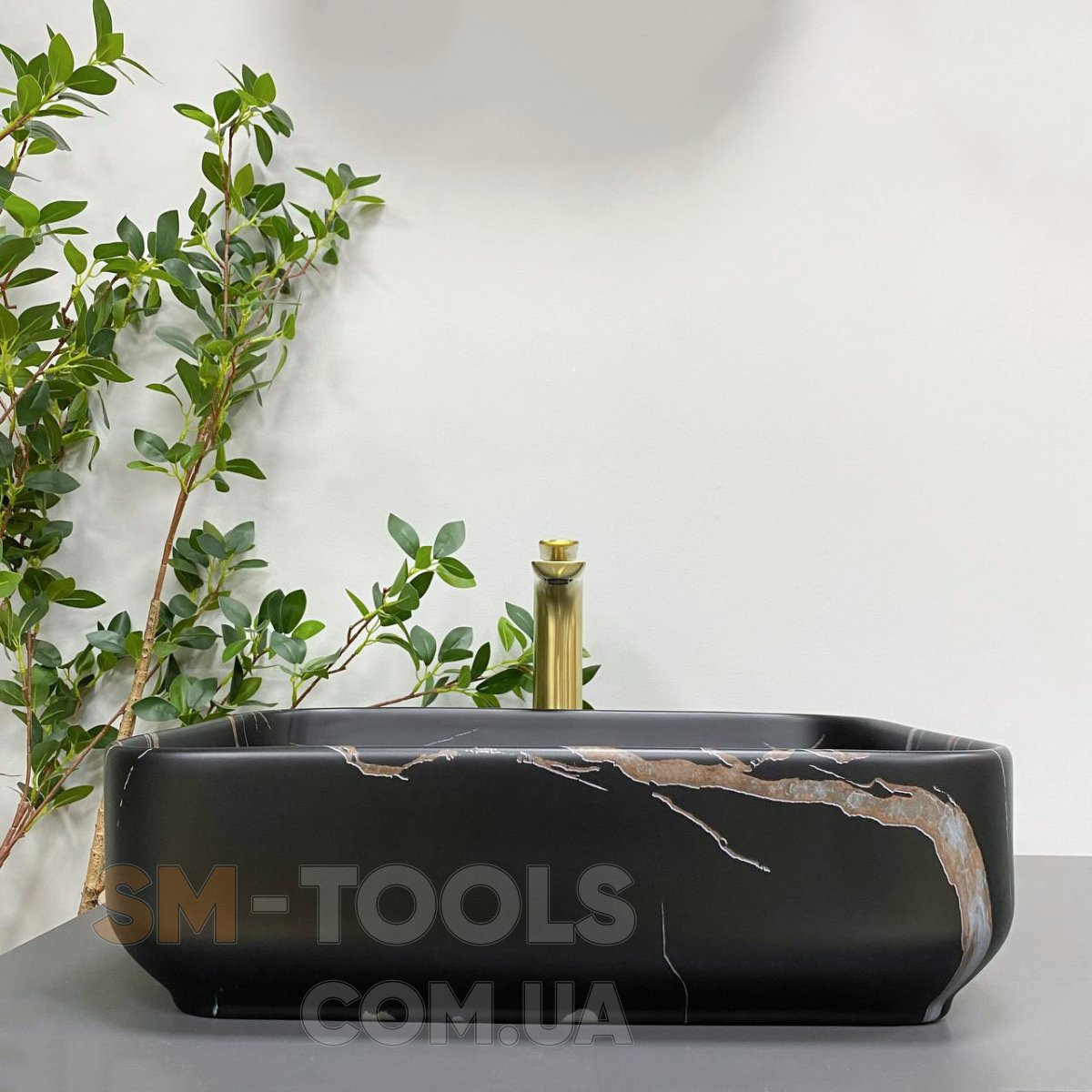 Накладні раковини серії VBI PALERMO мають високий попит і доступні в різних кольорах у глянсовому та матовому виконанні. Класичний дизайн з ідеальною прямокутною формою, що пом'якшується округлими кутами та тонкими лініями. Модель VBI PALERMO BLACK STONE - має унікальний узор. : кераміка