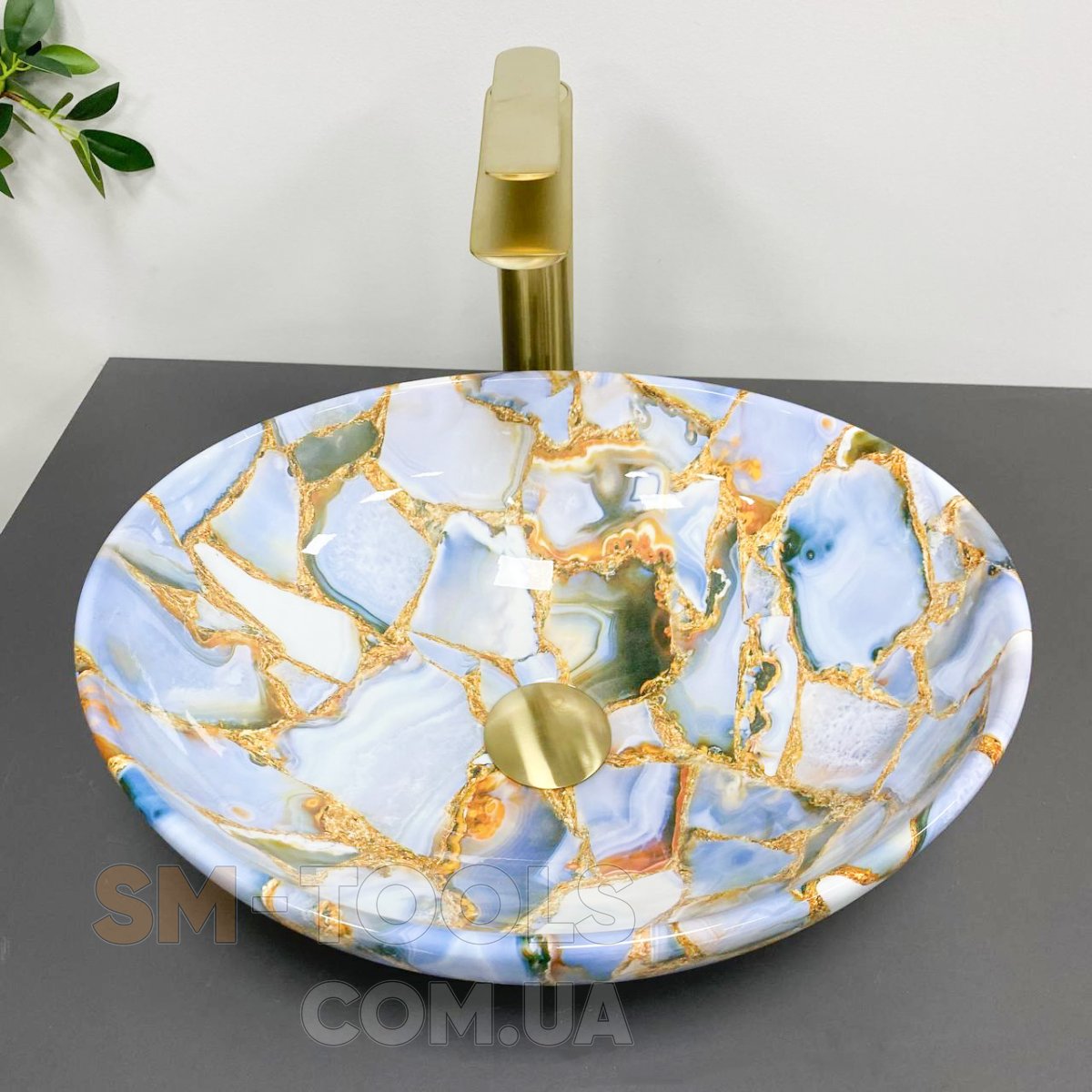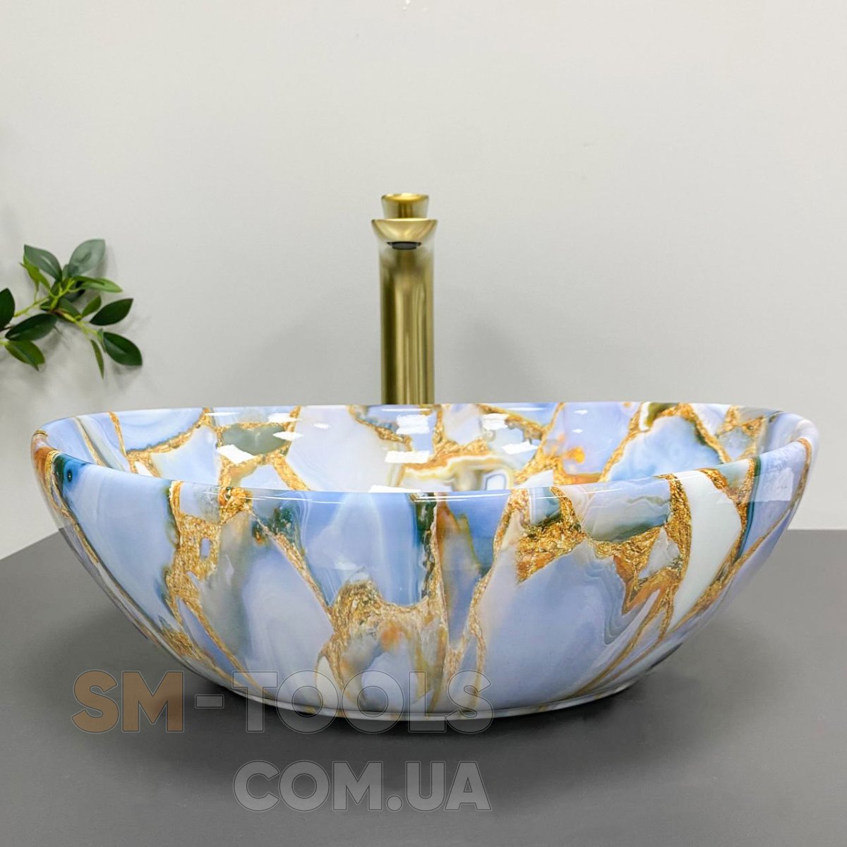 Умивальник (раковина) VBI PARMA MARBLE BLUE GLOSSY накладний