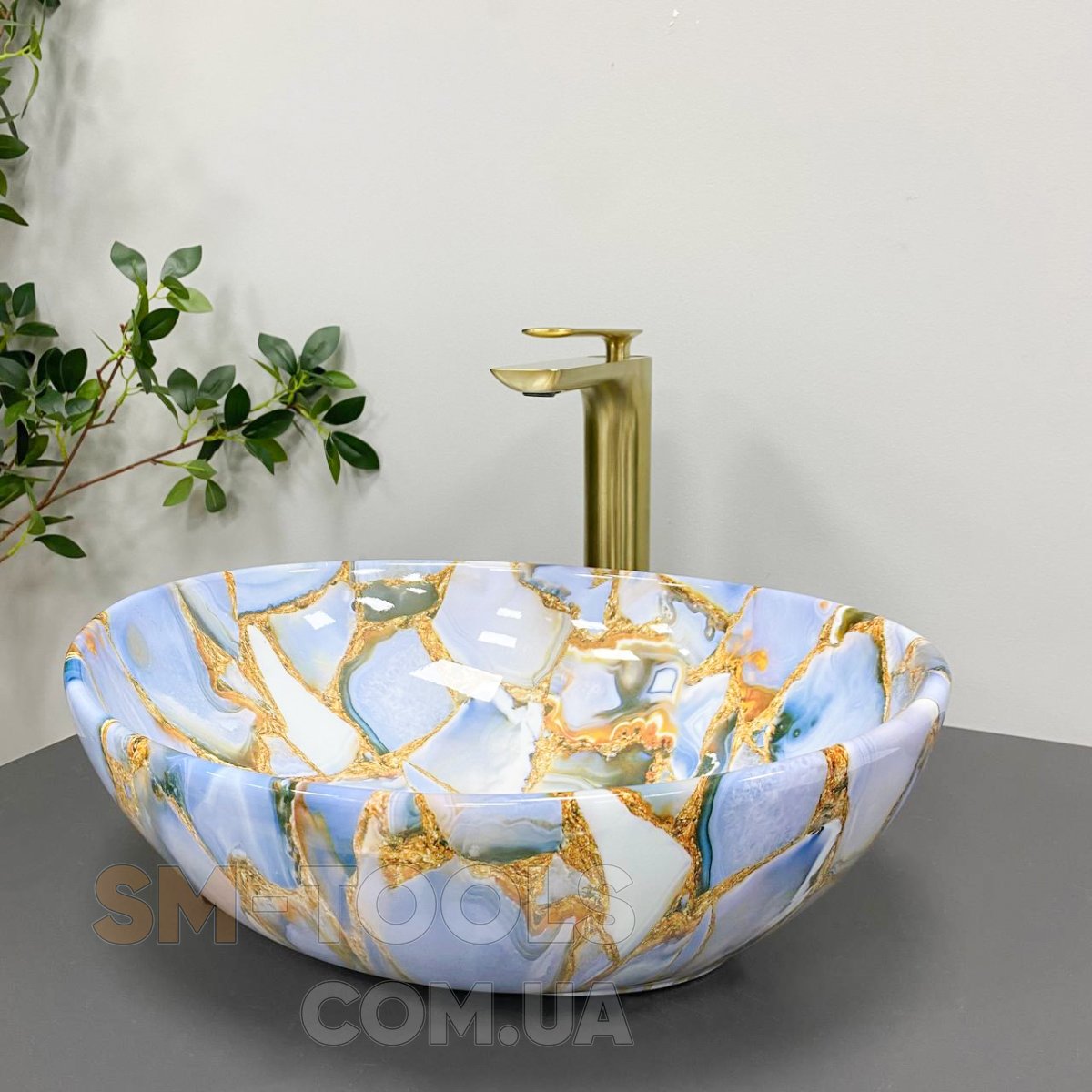 Опис Умивальник (раковина) VBI PARMA MARBLE BLUE GLOSSY накладний