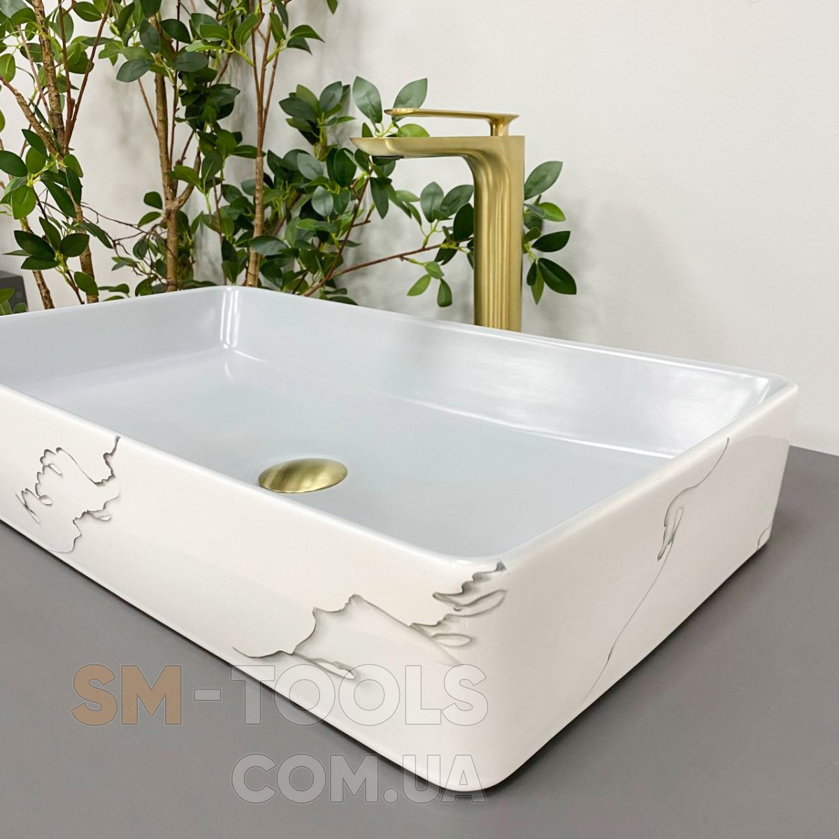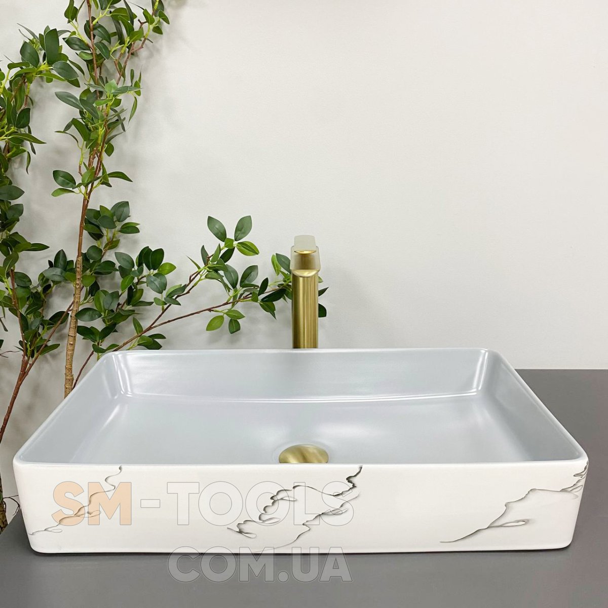 Накладні раковини серії VBI TRIEST мають високий попит і доступні в різних кольорах у глянсовому або матовому виконанні. Ідеальна прямокутна форма та прямі стінки, порушена легкими вигинами всередині, що створює сучасний та класичний вигляд. Призначений для встановлення на стільницю. Модель GREY MARMO - всередині ніжного сьогоро кольору.