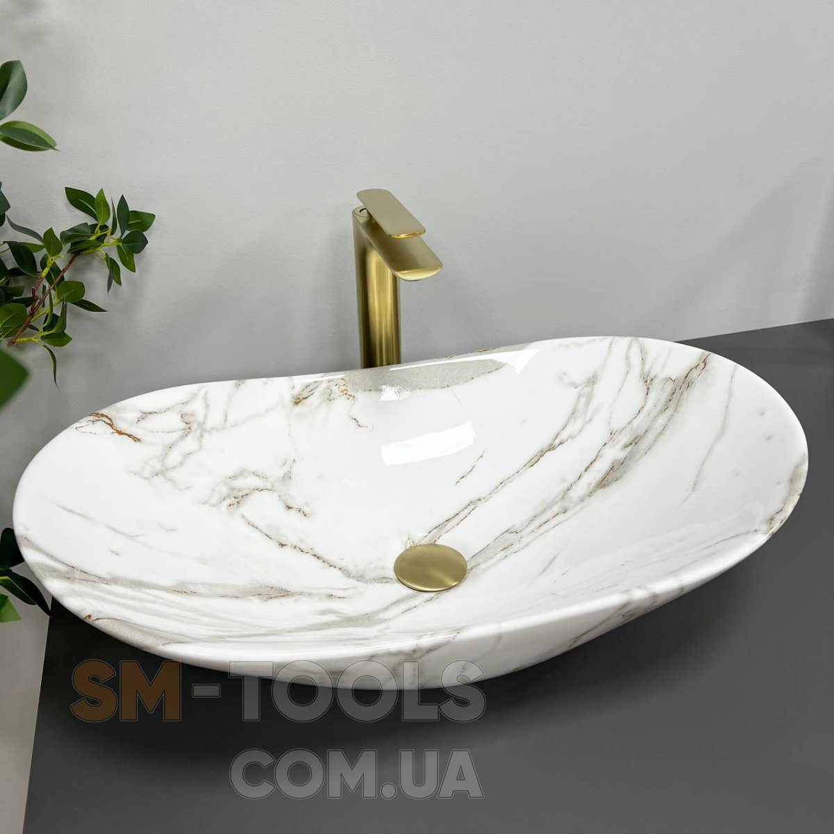 Накладні раковини серії VBI TURIN мають високий попит і доступні в різних кольорах у глянсовому або матовому виконанні. Має сучасну овальну форму з тонкими лініями, а краї трохи піднесені до верху, що забезпечує максимальний комфорт при використанні. Раковина VBI TURIN LAVA - має унікальний малюнок, імітації граніту і гладку, глянцеву поверхню, яка виглядає мінімалістично і надає загальний блиск.