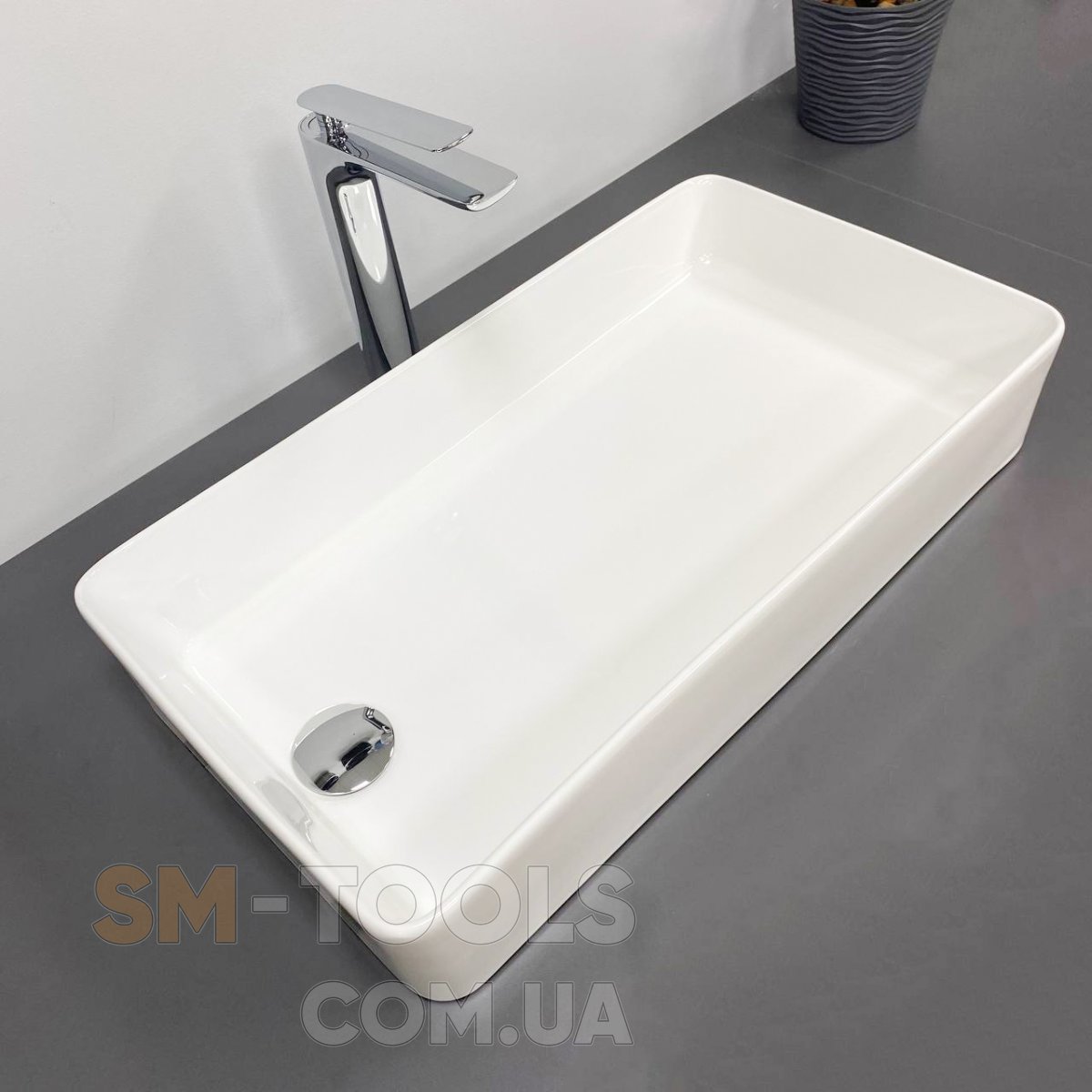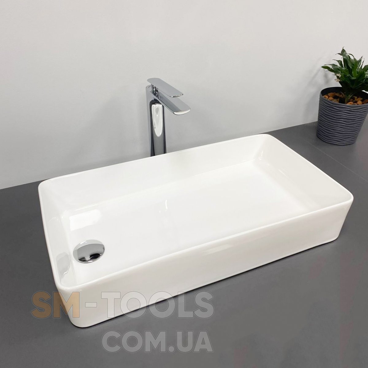 Накладні раковини серії VBI VELLETRI мають високий попит і доступні в різних. Проста прямокутна форма та чіткі прямі стінки – ідеально доповнять будь-який дизайн ванної кімнати. Зливний отвір - зміщений до краю раковини. Умивальник виготовлений з високоякісної кераміки і призначений для установки на стільницю. : кераміка