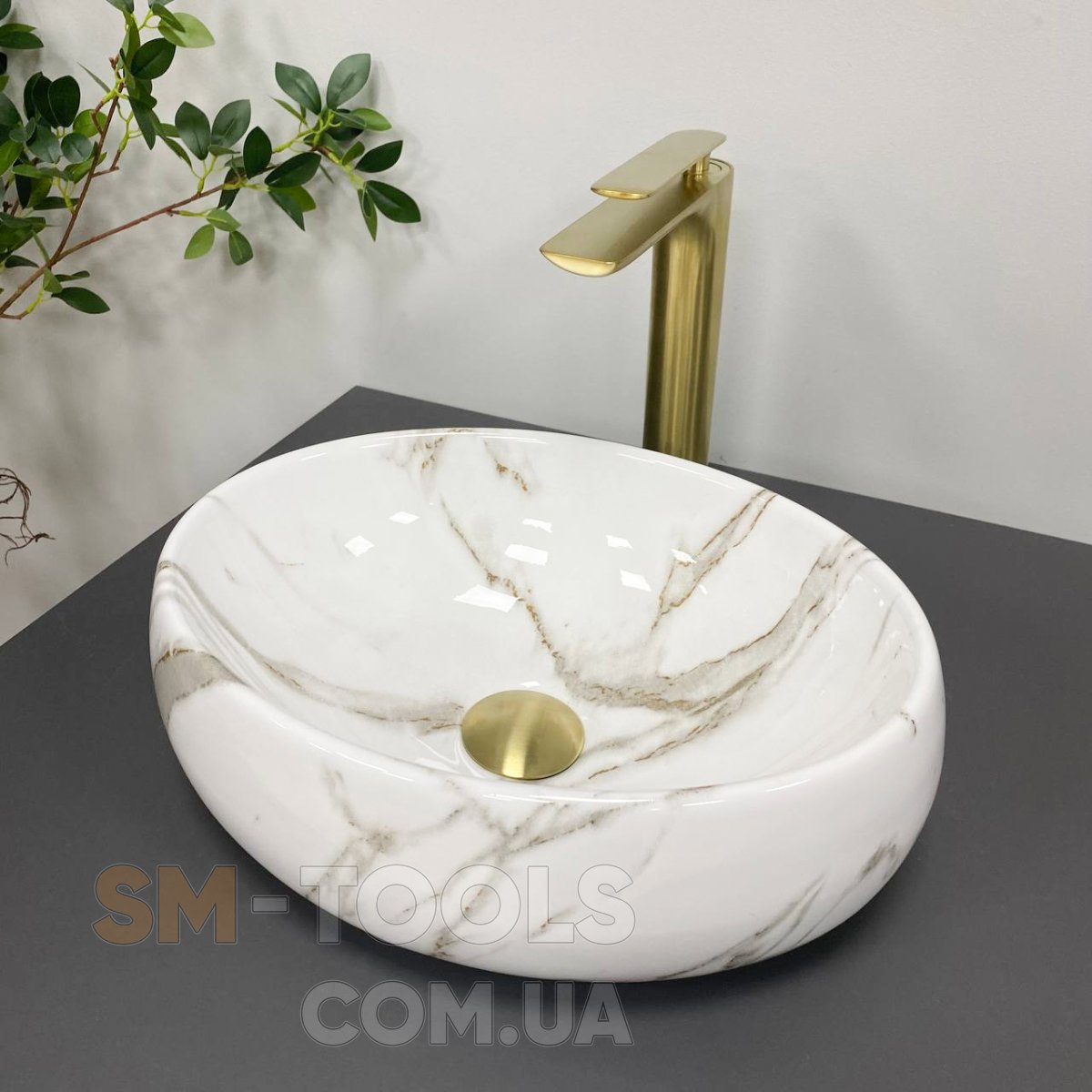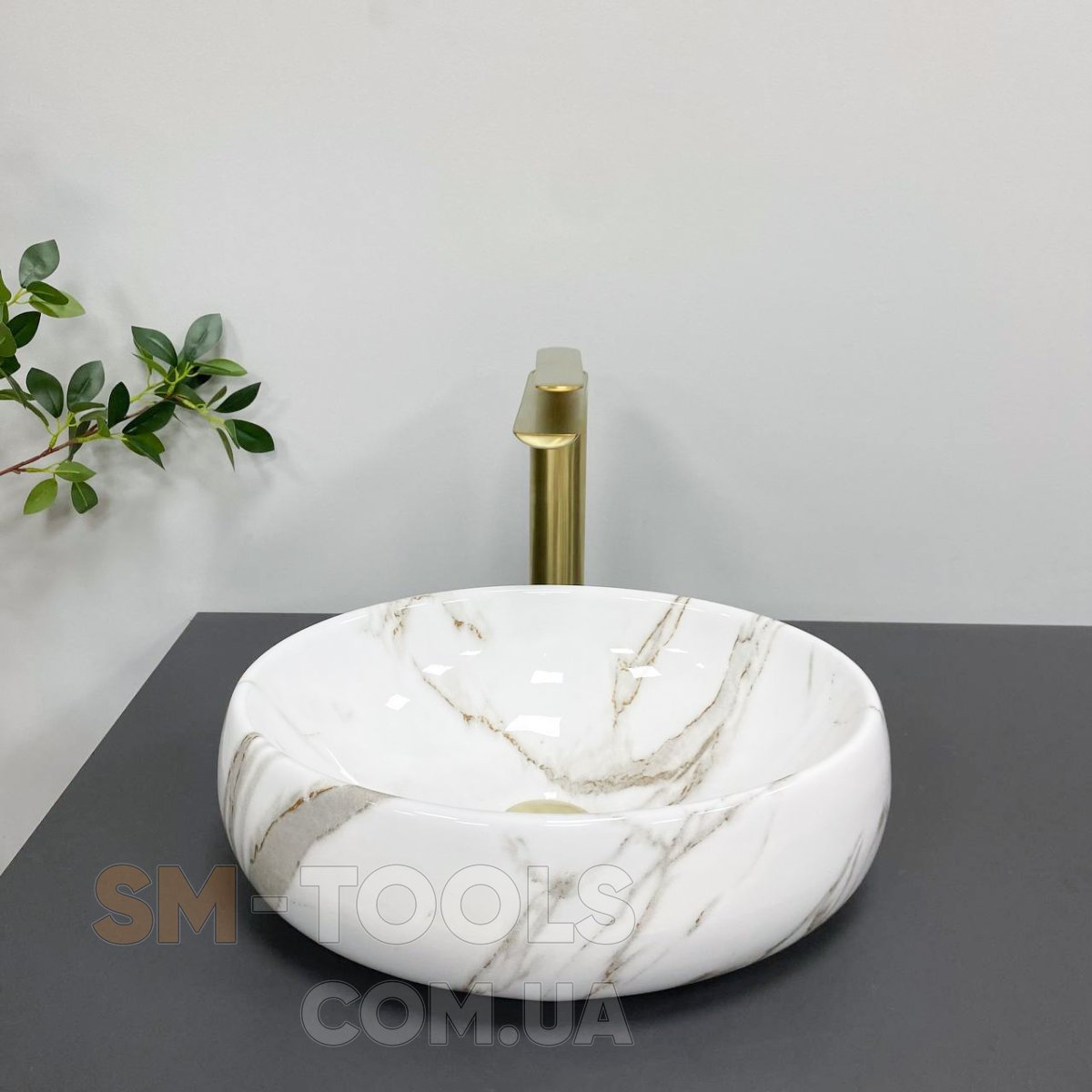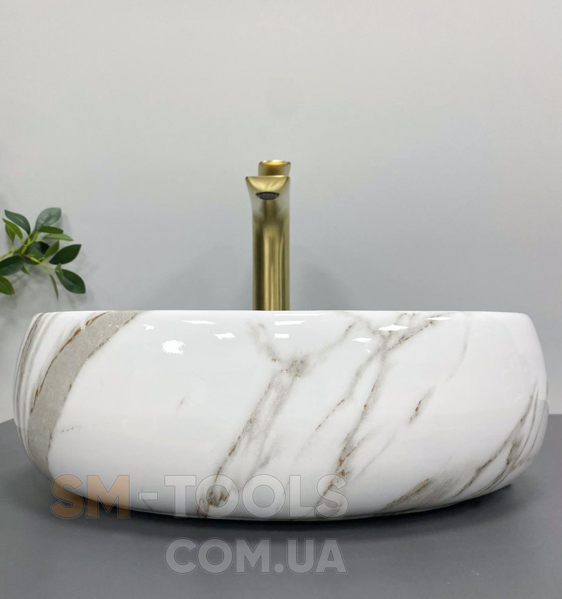 Накладні раковини серії VBI VENETO мають високий попит і доступні в різних розмірах і кольорах у глянсовому або матовому виконанні. Накладна за способом встановлення раковина має овальну форму з набряклими стінками назовні, що повністю довершує дизайн. Модель VBI VENETO AIAX – виконана з неповторним візерунком, що імітує мармур з глянцевим покриттям.