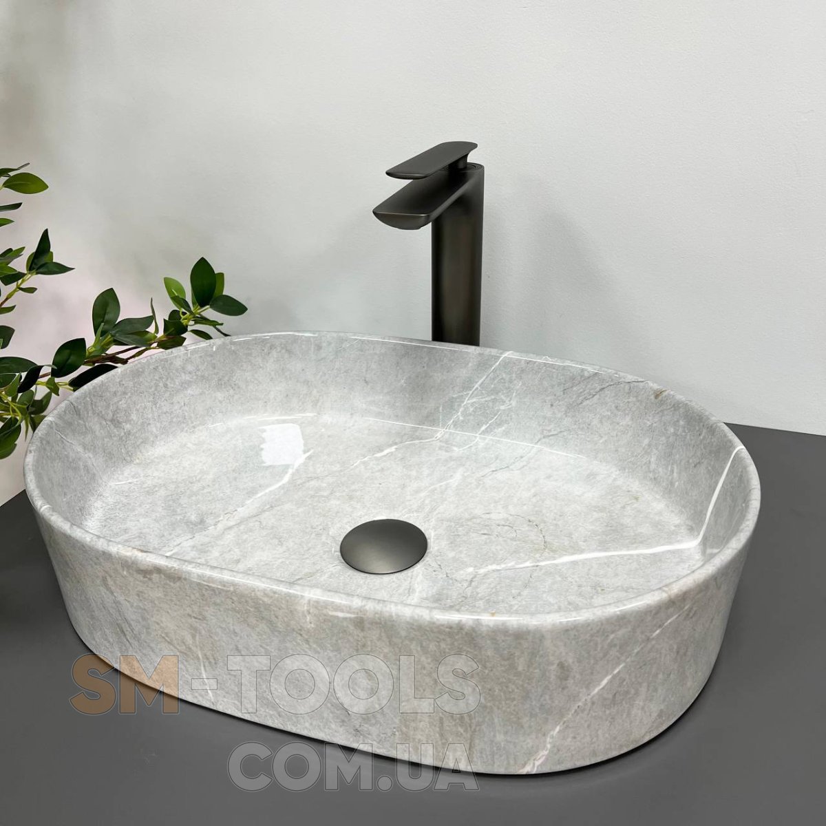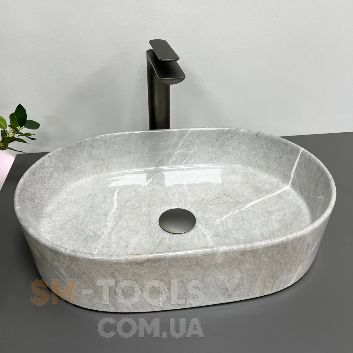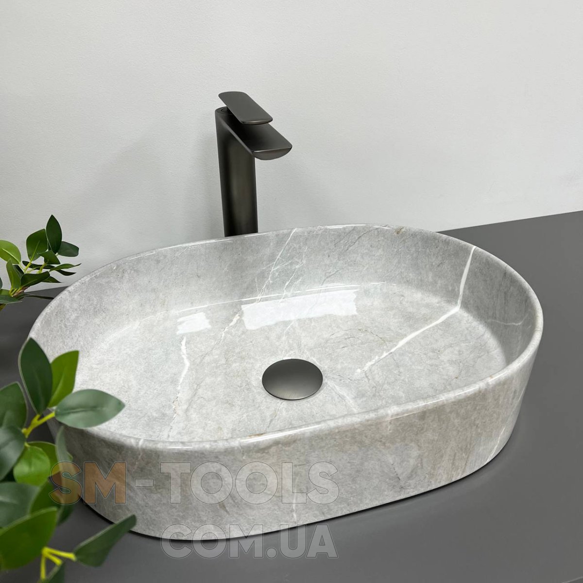 Накладні раковини серії VBI VERONA мають високий попит і доступні в різних розмірах і кольорах у глянсовому або матовому виконанні. Накладна за способом встановлення раковина має класичну овальну форму з чіткими лініями. Це дозволяє підібрати змішувач як круглої, так і квадратної форми. Модель VBI VERONA 50 GRAY STONE – має унікальний малюнок, а глянсове покриття відбиває світло, створюючи враження збільшення та яскравості.