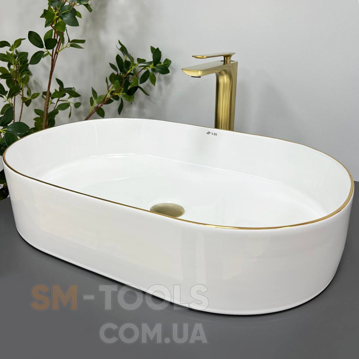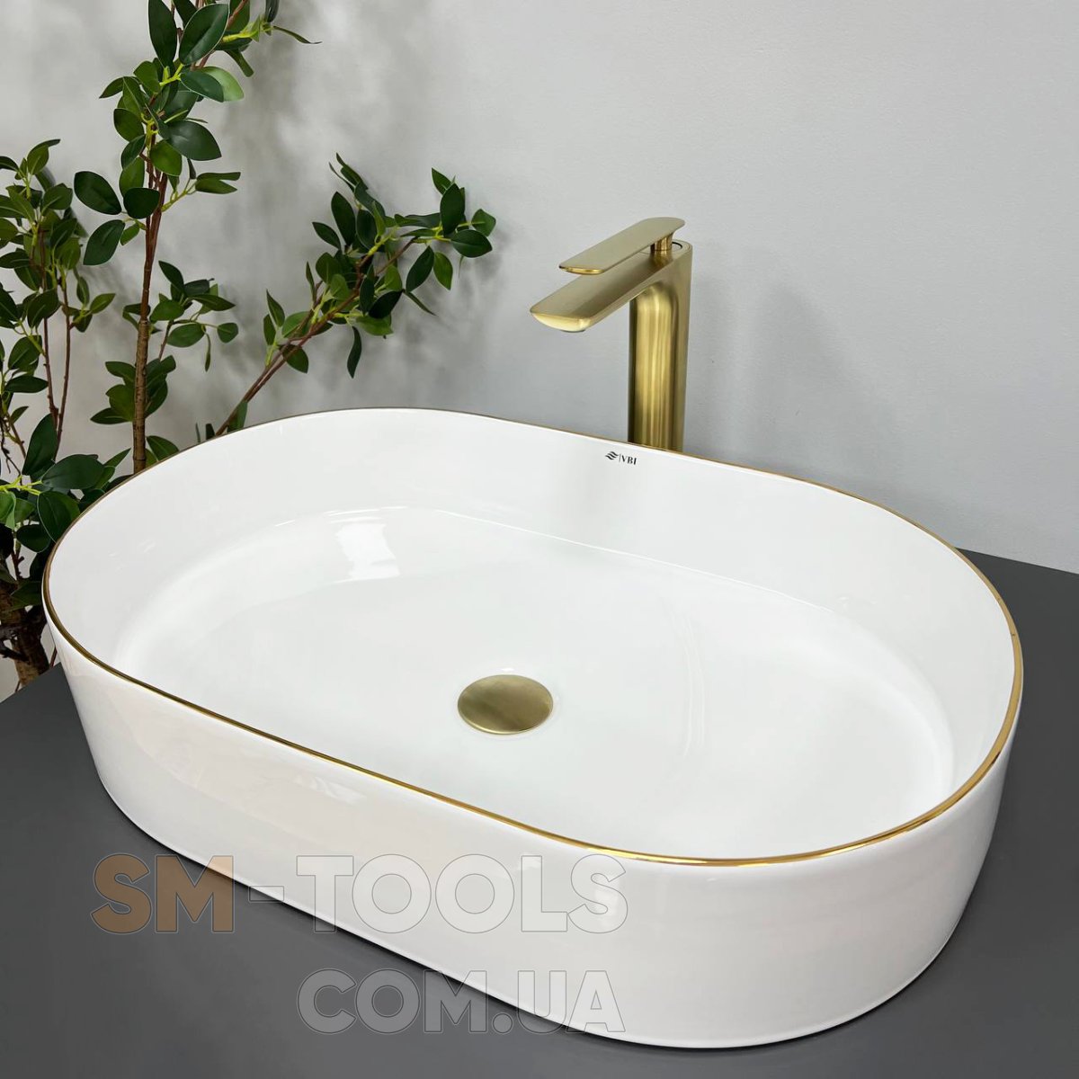 Опис Умивальник (раковина) VBI VERONA 60 WHITE GOLD EDGE накладний