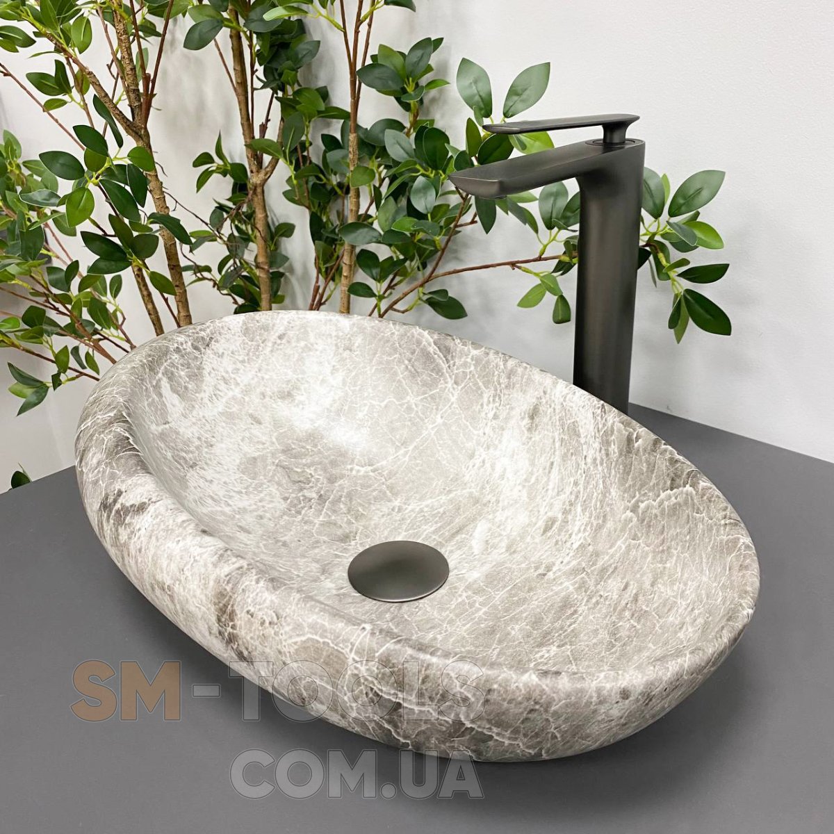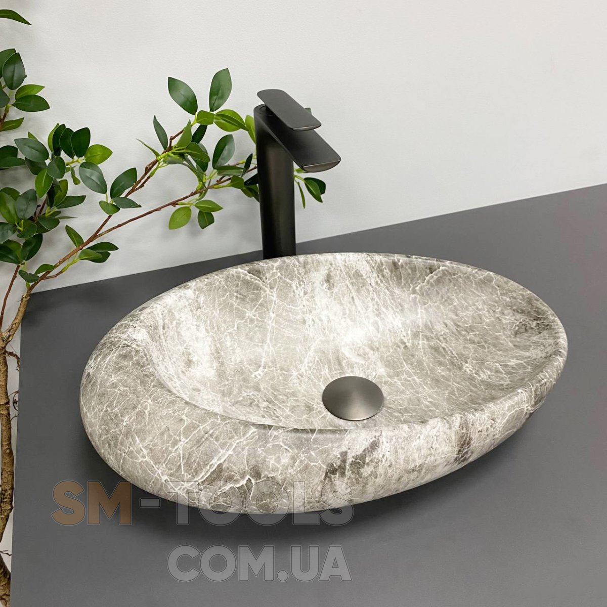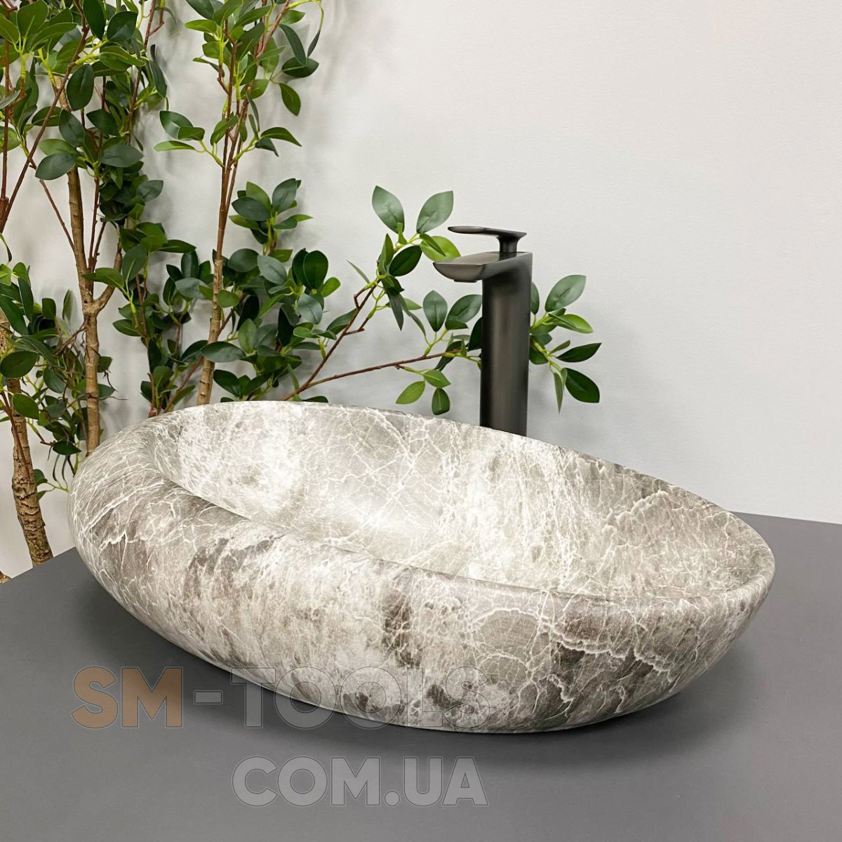 Накладні раковини серії VBI VICENZA мають високий попит і доступні в різних кольорах у глянсовому та матовому виконанні. Ідеально овальна форма, яка порушена нестандартною опуклою однієї зі сторін, а її унікальний візерунок, що імітує природний камінь, надає загальний шарм.