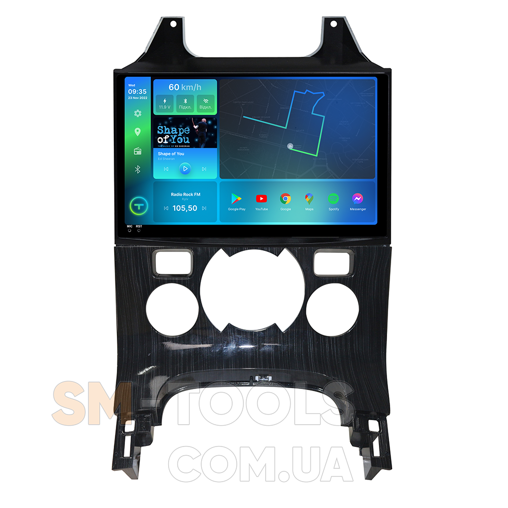 Цифрова магнітола, дизайн якої повністю розроблений під особливості салону вашого автомобіля, працює на ОС Andriod, підтримує інтернет-підключення Wi-Fi, 3G/4G, систему контролю тиску в шинах TPMS, систему кругового огляду 360 градусів, а також Carplay/Android Auto та відповідає найвищим вимогам шанувальників музики під час поїздок на авто.