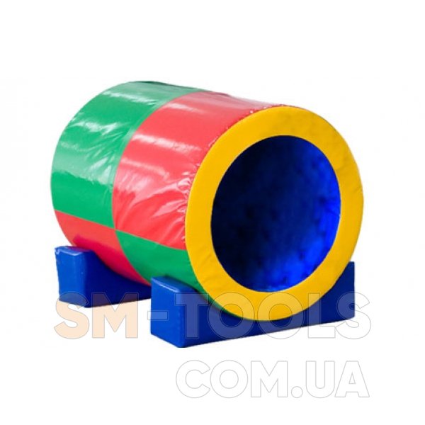 Тренажер Kidigo Туннель состоит из нескольких модулей: одного колеса в форме цилиндра и двух подставок под него. Туннель используется для пролазывания внутри, тренирует мышцы рук ног, моторику и координацию движения. Можно использовать колесо без подставок, таким образом, тренируется вестибулярные мышцы и аппарат, ребенок преодолевает страхи и трудности на своем пути.