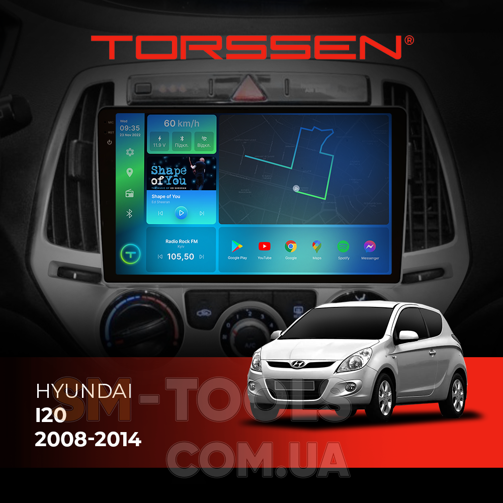 Опис Штатна магнітола Torssen 2K Hyundai I20 08-14 FL10 4+64Gb 4G Carplay DSP
