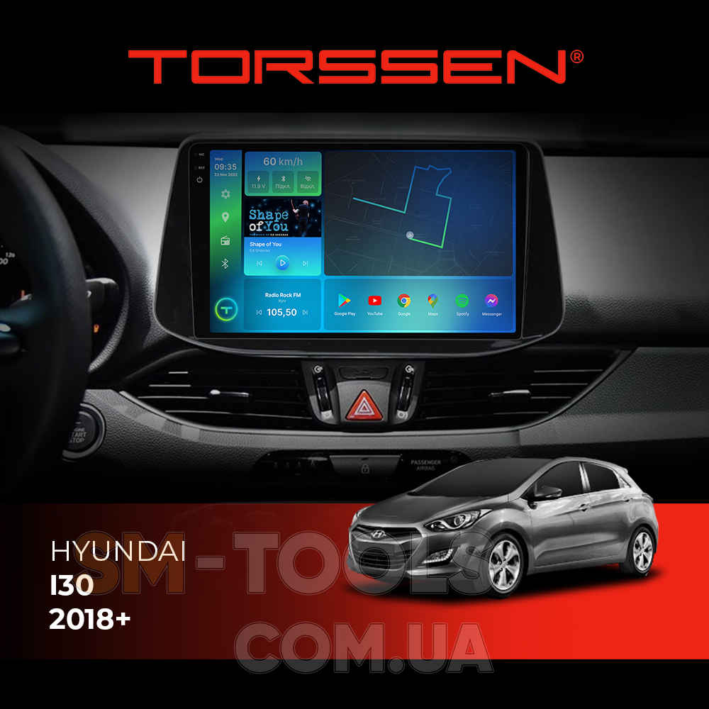 Опис Штатна магнітола Torssen 2K Hyundai I30 18+ F98256 4G Carplay DSP