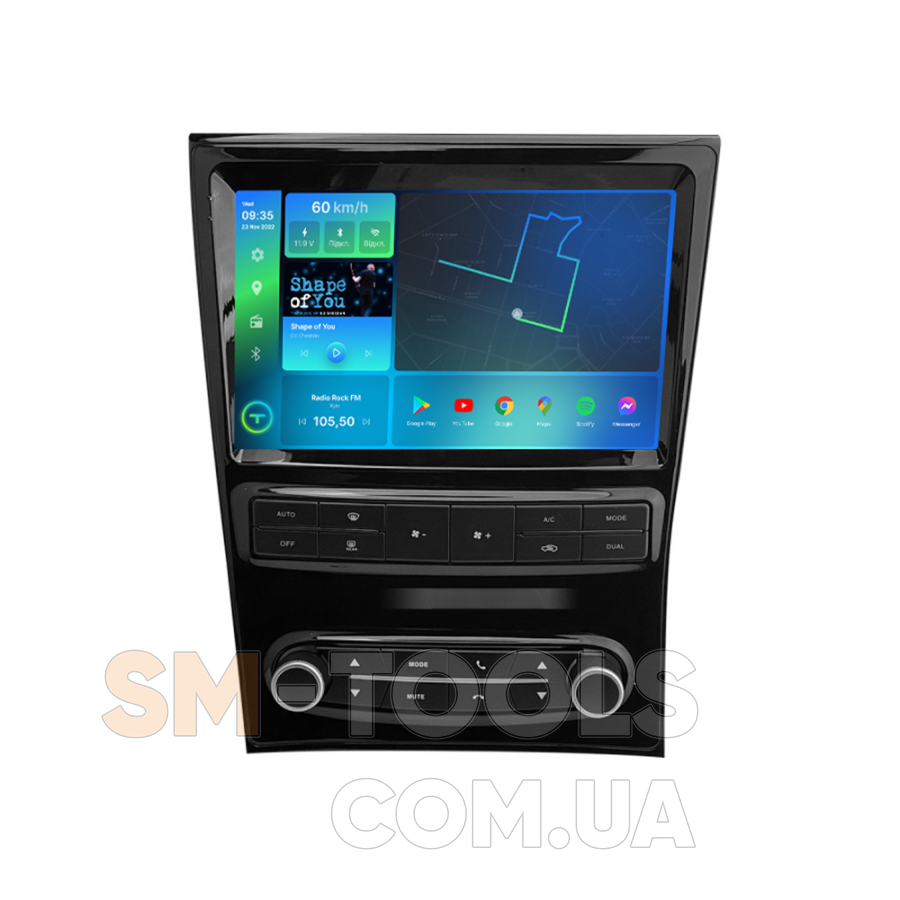 Цифрова магнітола, дизайн якої повністю розроблений під особливості салону вашого автомобіля, працює на ОС Andriod, підтримує інтернет-підключення Wi-Fi, 3G/4G, систему контролю тиску в шинах TPMS, систему кругового огляду 360 градусів, а також Carplay/Android Auto і відповідає самим високі вимоги любителів музики під час поїздок на авто.