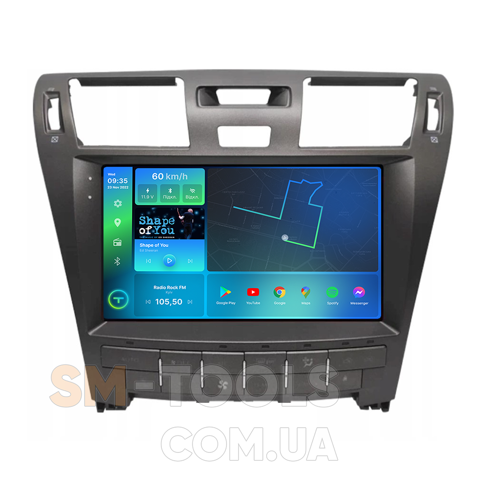 Цифрова магнітола, дизайн якої повністю розроблений під особливості салону вашого автомобіля, працює на ОС Andriod, підтримує інтернет-підключення Wi-Fi, 3G/4G, систему контролю тиску в шинах TPMS, систему кругового огляду 360 градусів, а також Carplay/Android Auto і відповідає самим високі вимоги любителів музики під час поїздок на авто.
