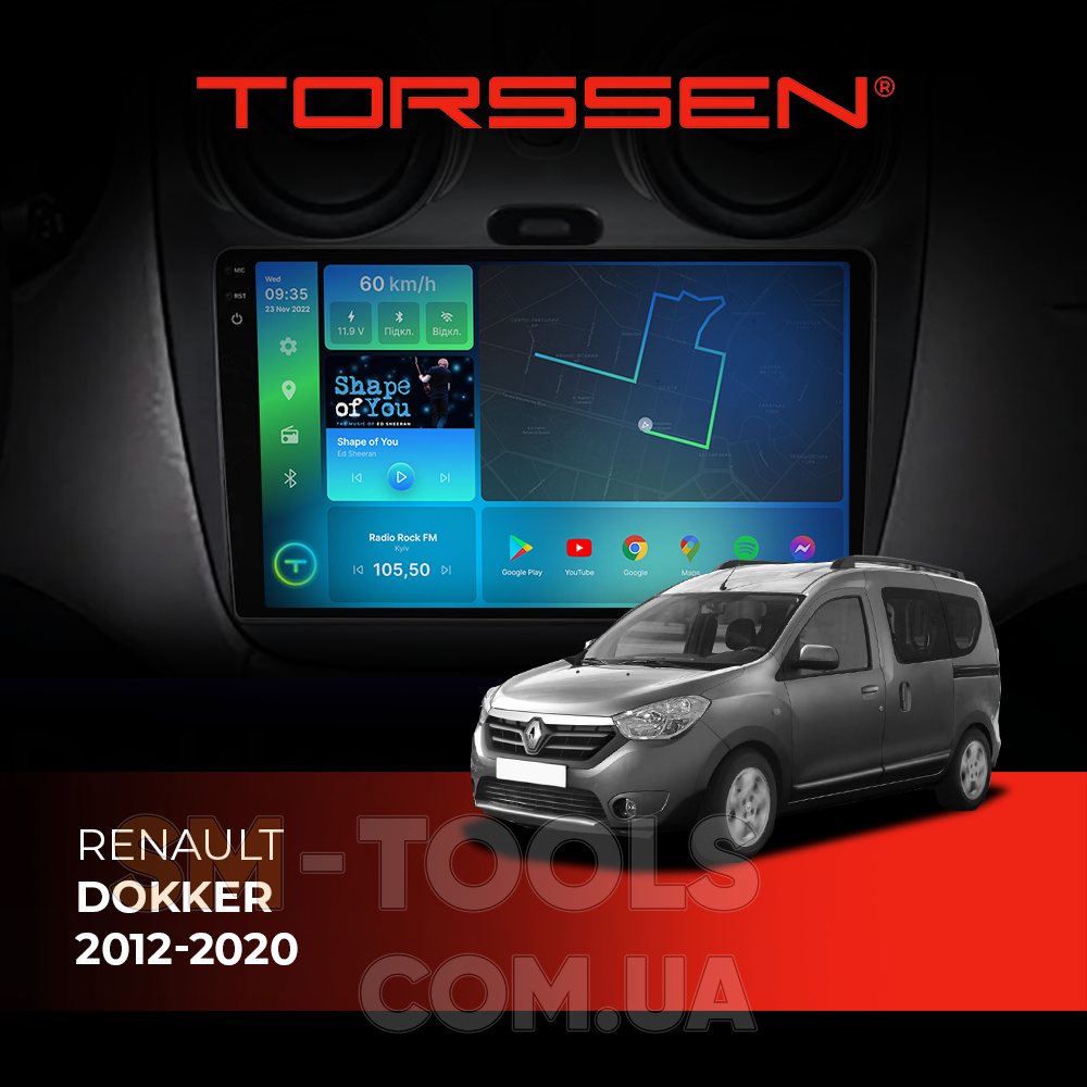 Опис Штатна магнітола Torssen 2K Renault Dokker 2012-2020 FL9 4+64Gb 4G Carplay DSP