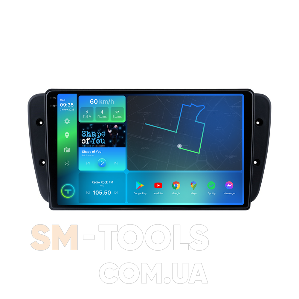 Цифрова магнітола, дизайн якої повністю розроблений під особливості салону вашого автомобіля, працює на ОС Andriod, підтримує інтернет-підключення Wi-Fi, 3G/4G, систему контролю тиску в шинах TPMS, систему кругового огляду 360 градусів, а також Carplay/Android Auto і відповідає самим високі вимоги любителів музики під час поїздок на авто.