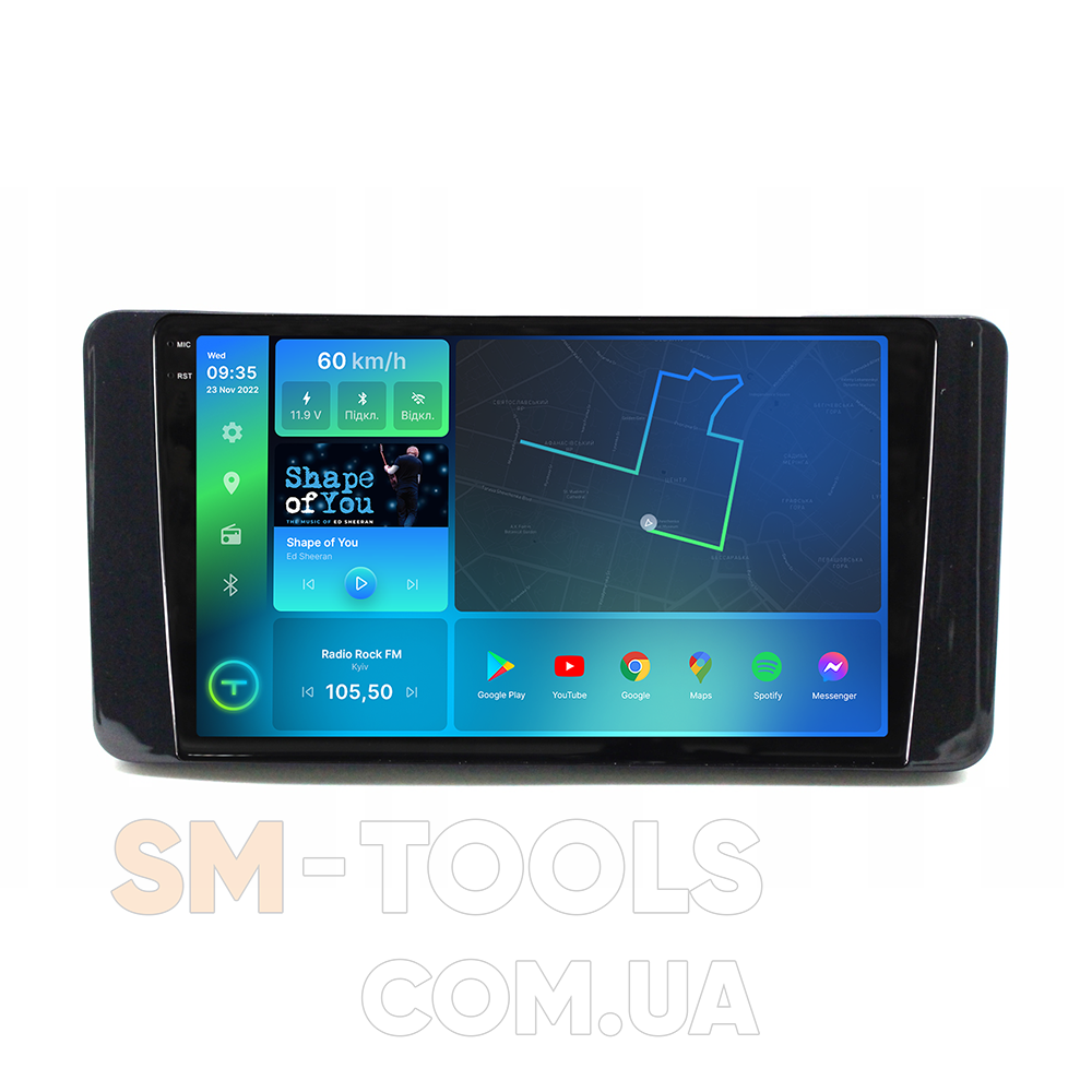 Цифрова магнітола, дизайн якої повністю розроблений під особливості салону вашого автомобіля, працює на ОС Andriod, підтримує інтернет-підключення Wi-Fi, 3G/4G, систему контролю тиску в шинах TPMS, систему кругового огляду 360 градусів, а також Carplay/Android Auto і відповідає самим високі вимоги любителів музики під час поїздок на авто.
