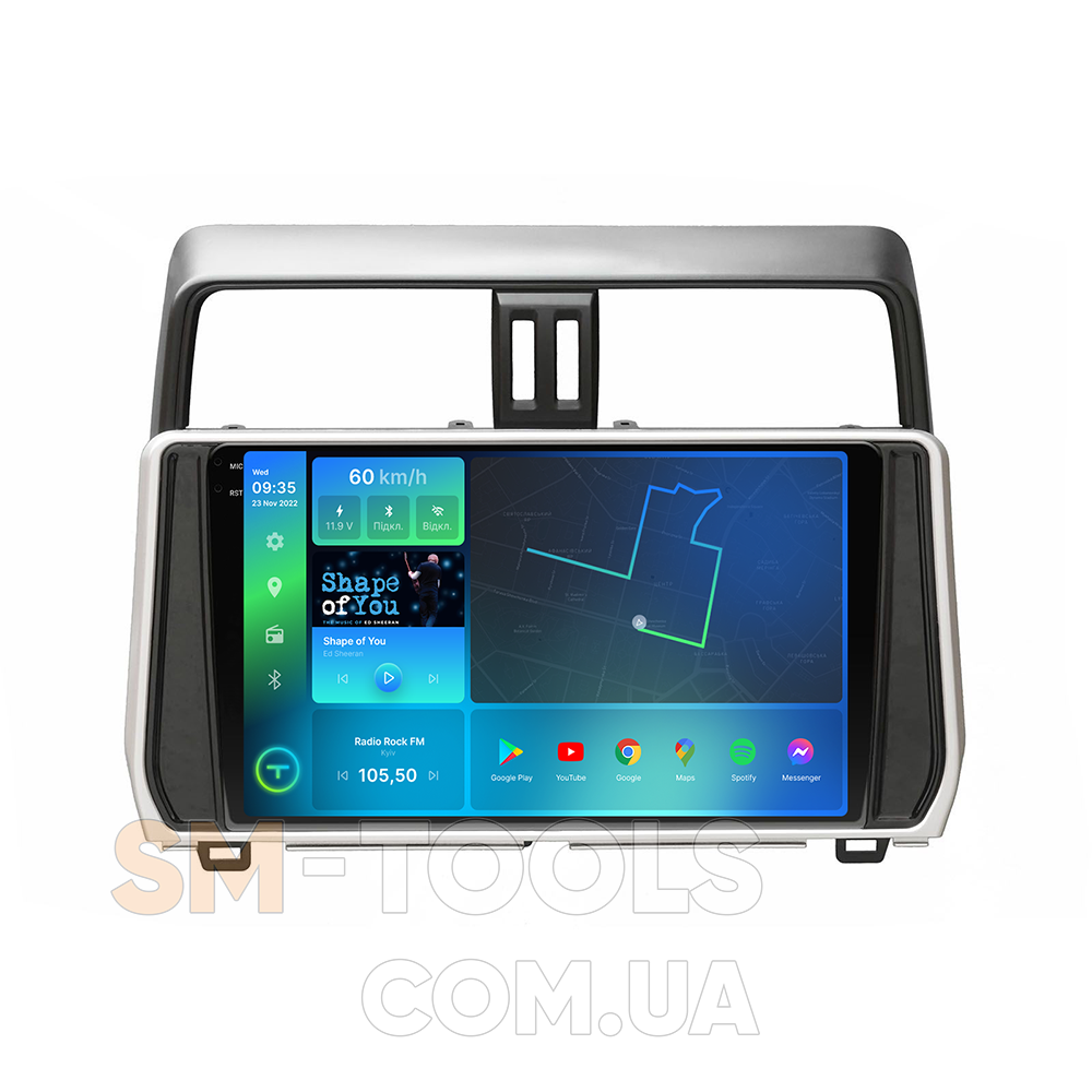 Цифрова магнітола, дизайн якої повністю розроблений під особливості салону вашого автомобіля, працює на ОС Andriod, підтримує інтернет-підключення Wi-Fi, 3G/4G, систему контролю тиску в шинах TPMS, систему кругового огляду 360 градусів, а також Carplay/Android Auto і відповідає самим високі вимоги любителів музики під час поїздок на авто.