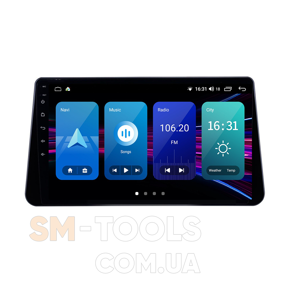 10" дюймів екран HD роздільна здатність 1024x600 Ємнісний морозостійкий сенсор, мультитач до 5 дотиків (наприклад масштабування та обертання карти навігації 2-ма пальцями), чуйний і легкий дотик - так само, як на сучасних смартфонах і планшетах. Якість, яскраві, соковиті кольори.Великі кути огляду екрана дозволяють насолоджуватися переглядом з будь-якого сидіння вашого автомобіля.Предусмотрено поділ екрана на дві частини, що дає можливість одночасно використовувати дві програми, наприклад, навігація та радіо.