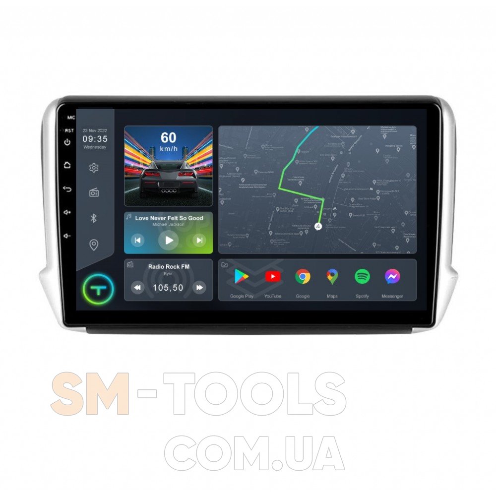 Цифрова магнітола, дизайн якої повністю розроблений під особливості салону вашого автомобіля, працює на ОС Andriod, підтримує інтернет-підключення Wi-Fi, 3G/4G, систему контролю тиску в шинах TPMS, систему кругового огляду 360 градусів, а також Carplay/Android Auto і відповідає найвищі вимоги любителів музики під час поїздок на авто.