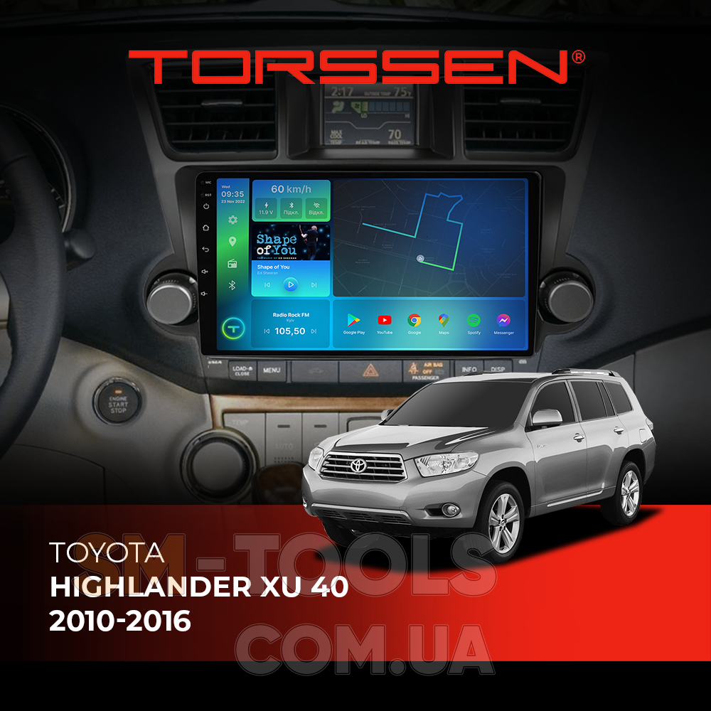 Характеристики Штатна магнітола Torssen Toyota Highlander XU 40 2010-2016 F10116 без крутилок