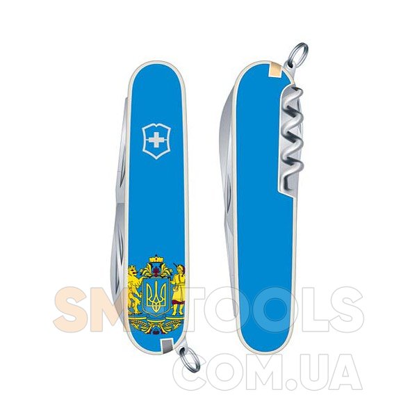 Легендарный швейцарский производитель Victorinox (Викторинокс) удивляет весь мир уникальными и непревзойдёнными ножами. На этот раз за счёт своих товаров решил объединить Украину. Складной нож Victorinox Huntsman UKRAINE 1.3713.7R6 – уникальное дизайнерское решение. Выполнен с украинской символикой. Главные из них – это золотой лев с казаком. Вместе они держат щит – украинский Тризуб. А это обозначает объединение востока и запада Украины. Эксклюзивный швейцарский нож станет великолепным помощником для сильной половины человечества. Оснащён отлично режущей пилой для дерева. С ней Вы срежете ветки и даже распилите дерево. Так что всегда пригодиться на дачном участке. Ненавидите непредвиденные ремонты? Victorinox Huntsman UKRAINE 1.3713.7R6 всегда облегчит их. Потому что, в его арсенале острое шило, приспособление для снятия изоляции. А так же отвёртки для лёгкого закручивания и откручивания крепёжных изделий. Прекрасно дополняет данную модель и многоцелевой крючок. Поскольку, всегда поможет Вам поднять тяжёлые предметы. Отдельно стоит отметить и замечательно режущее лезвие. Надёжный инструмент выполнен с тонкой кромкой. Поэтому, замечательно почистит и нарежет к примеру фрукты. Безусловно, что пригодится и в других работах. К примеру, великолепно порежет продукты. Собрались в командировку или же в туристический поход? Но Вы не знаете, как более комфортно провести это время! Victorinox Huntsman UKRAINE 1.3713.7R6 решит Ваш вопрос. Потому что помимо всего в его наличии ещё и специальные открывалки для бутылок и консервов. Согласитесь, что без этих инструментов трудно представить себе любое путешествие. Превосходно дополняют данную модель пинцет и подвесное кольцо для замены брелка. Эти надёжные элементы всегда послужат Вам в повседневных целях. Изготовлены швейцарские ножи только из высококачественных материалов. А сборка производиться высококвалифицированными специалистами. По этим причинам, швейцарский производитель Victorinox, каждый товар поставляет с официальным документом – пожизненная гарантия на материал и сборку. Желаете купить на 100% оригинальный, швейцарский нож Victorinox Huntsman UKRAINE 1.3713.7R6? Оформляйте у нас заказ!