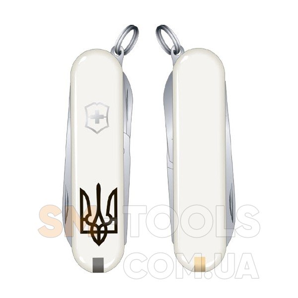 Эксклюзивный и высококачественный швейцарский нож Victorinox Classic SD Ukraine Vx0.6223.7R1 с украинской символикой на классическом белом фоне рукояти покорил многие сердца во всем мире. Герб (Тризуб) – символ Независимой Украины. Именно он и расположен на рукояти Victorinox Classic SD Ukraine Vx0.6223.7R1. Модель выполнена из нержавеющей стали со специальными высокопрочными пластиковыми накладками на рукоятке. Поэтому, Victorinox Classic SD Ukraine Vx0.6223.7R1, долговечный и надёжный для использования. Отдельно стоит отметить и функциональность складного набора. Поскольку, отлично режущее лезвие выручит Вас во многих работах. К примеру, с его помощью Вы легко вскроете конверт и даже сможете сделать чистки и нарезки фруктов. А вот ножницы с пилочкой и пинцетом – ежедневные помощники. Плюс, швейцарский нож содержит и специальную отвёртку, которая легко закрутит и открутит крепёжные изделия. Безусловно, что подвесное кольцо замечательно послужит в качестве брелка. Victorinox Classic SD Ukraine Vx0.6223.7R1 – отличный презентабельный подарок как для сильной так и для прекрасной половины человечества.