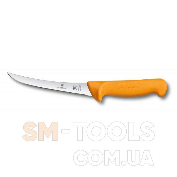 Victorinox Swibo Vx58405.16 – отличный обвалочный кухонный нож. За счёт специального острого лезвия Вы легко сможете отделить мясо от костей. Оригинальный швейцарский нож с ярко-жёлтой рукояткой изготовлен из высококачественной нержавеющей стали. В использовании, удобный, надёжный и долговечный. Рукоятка со специальным упором под пальцы не скользит в руке. Плюс, стойкая к повреждениям и потёртостям. Поскольку, имеет специальные накладки из высококачественного полипропилена.