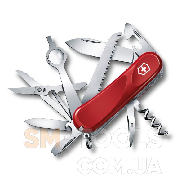 Уникальный и многофункциональный складной нож Victorinox Evolution Vx25013.E, станет отличным презентом для сильной половины человечества. Оснащён важными для ежедневного использования элементами: большим и малым клинками. Инструменты помогут справиться с ежедневными работами. К примеру, Вы легко нарежете продукты, и почистите фрукты. Специальная режущая пила срежет ветки и распилит дерево небольшого диаметра. С помощью лупы Вы сможете более подробно рассмотреть предметы. Безусловно, что режущий консервный нож легко откроет жестяную банку, а открывалка бутылку. Вытащить любую пробку из бутылки Вам всегда поможет штопор. Так что вместе с уникальным складным набором можете смело отправляться в путешествие. Плюс, швейцарский нож содержит и такие важные для ремонта элементы как шило, приспособление для снятия изоляции. А так же отвёртки, которые помогут Вам легко закрутить и открутить крепёжные изделия. Отлично дополняют складной набор и пинцет, ножницы со специальным фиксатором, а так же пилочка с очистителем для ногтей. Выполнен швейцарский нож Victorinox Evolution Vx25013.E с эргономичной рукояткой, которая не позволяет руке уставать.