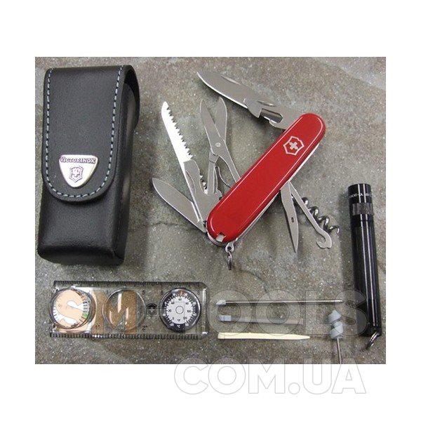 Набор Victorinox Vx18726 Traveller Set (нож+фонарь+компас+чехол). Набор для путешественников Victorinox Vx18726 содержит 4 предмета (всего 26 функций):• Кожаный чехол с креплением для ношения на ремне• Компас / уровень / линейка: в сантиметрах / и дюймах. Размеры: 91 х 27 х 21 (ДхШхВ, мм)