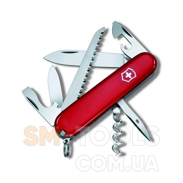 Многофункциональный, эксклюзивный, швейцарский нож Victorinox Camper Vx13613 с красивой, глянцевой, ярко-красной рукояткой – замечательный подарок для сильной половины человечества. Модель изготовлена из нержавеющей стали со специальными накладками из высокопрочного пластика. Victorinox Camper Vx13613, надёжный и долговечный в использовании. Содержит большой и малый клинки, которые помогут Вам проделать множество работ. Лезвия долгое время не требуют дополнительной заточки. Пила срежет ветки и распилит даже дерево небольшого размера. Консервы и бутылки Вам откроют специальные открывалки. Любую пробку из бутылки вытащит штопор. Отвёртки легко закрутят и открутят крепёжные изделия, даже в труднодоступных местах. Плюс, в ремонтах выручит и шило с приспособлением для удаления изоляции. Оригинальное кольцо послужит Вам вместо брелка. Отлично дополняет данную модель и пинцет с зубочисткой. А красивый фирменный логотип компании Victorinox (Викторинокс) делает товар узнаваемым для всех. Victorinox Camper Vx13613 – лёгкий и компактный. Поэтому, отлично подойдёт в ежедневном использовании.
