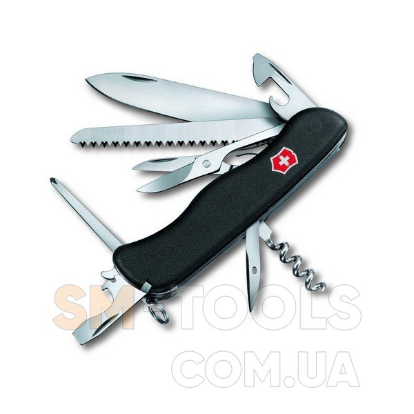 Швейцарский нож Victorinox Outrider Vx09023.3 в презентабельном чёрном цвете, замечательно подойдёт для лесных и садовых работ. Ведь, содержит великолепно режущую пилу. Инструмент легко срежет как ветки кустарников так и распилит дерево небольшого размера. Отдельно стоит отметить и большое лезвие, которое даже после длительных работ не требует дополнительного затачивания. За счёт ригельного фиксатора, клинок надёжно закрепляется в открытом и закрытом положениях. Крестовая и плоская отвёртки позволят закрутить и открутить крепёжные изделия. Устроить отличный пикник Вам «поможет» штопор, который вытащит любую пробку из бутылки. Безусловно, что острое шило поможет Вам справиться с множеством работ. Victorinox Outrider Vx09023.3 имеет и другие важные элементы, которые помогут Вам во многих местностях и ситуациях. К примеру, в путешествиях выручат специальные открывалки для консервов и бутылок. Режущие ножницы и пинцет с зубочисткой – прекрасно дополняющие элементы Victorinox Outrider Vx09023.3. Модель выполнена из нержавеющей стали, поэтому надёжна и долговечна. Плюс, рукоятка имеет и специальные накладки из высокопрочного пластика, который стойкий к повреждениям.