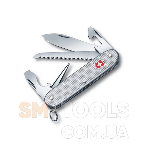 Складной нож Victorinox Farmer Alox Vx08241.26 – великолепный подарок для мужчин. В первую очередь швейцарский нож пойдёт по вкусу любителям работать с деревом. Ведь, данная модель содержит отлично режущую специальную пилу для дерева, которая не клинит в древесине. Кроме этого, складной набор радует и другими важными для сильной половины человечества элементами. К примеру, с помощью отвёрток, которые замечательно завинчивают и отвинчивают крепёжные изделия даже в трудно доступных местах, Вы всегда сможете сделать необходимый ремонт. А за счёт уникального инструмента снимите изоляцию с проводов. Конечно, что на любом пикнике, командировке или же туристическом походе Вы всегда будете рады открывалке для бутылок и консервному ножку. А главные работы Вам всегда выполнит большой клинок, не только в дороге, но и в быту. Уникальная и презентабельная модель изготовлена из высококачественных материалов. Дополнительной, особенностью является и рукоятка со специальными накладками из высокопрочного алюминия.