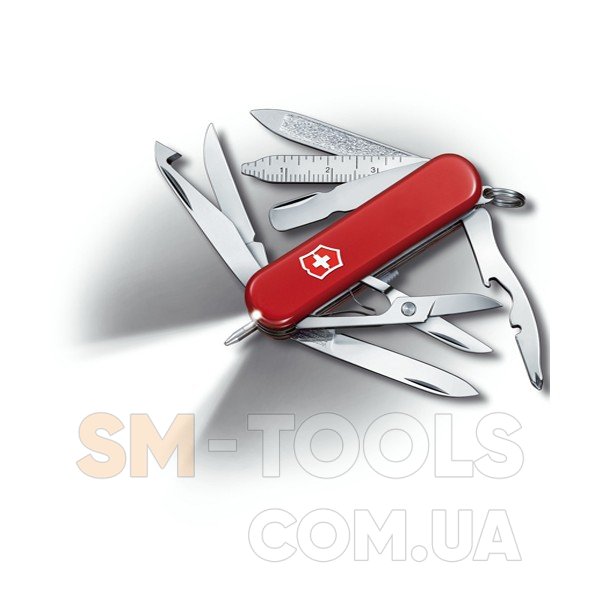 Мировой лидер по производству ножей – Victorinox (Викторинокс) умеет удивить каждого. На этот раз презентуем Вам эксклюзивный и самый необычный складной нож Victorinox Midnite Minichamp Vx06386. Ведь, оснащён множеством уникальных инструментов. В отличии от других моделей Victorinox Midnite Minichamp Vx06386 содержит специальный элемент для чистки апельсинов, что очень удобно, к примеру на работе или в командировке. Отдельно стоит отметить и эксклюзивное лезвие для разрезания конвертов и другой бумаги. Поэтому в первую очередь данный элемент отлично подойдёт на работе. Безусловно, что в офисе Вам всегда на помощь «прейдет» линейка и прекрасно пишущая шариковая ручка. А вот в темноте рассмотреть предметы сможете за счёт эксклюзивного светодиодного фонарика. И конечно же, что каждую женщину ежедневно будет радовать пилочка для ногтей, а так же специальная лопатка для кутикул. Мужчины оценят отвёртки, особенно магнитную, которая легко закручивает и откручивает к примеру, винты и шурупы даже в труднодоступных местах.