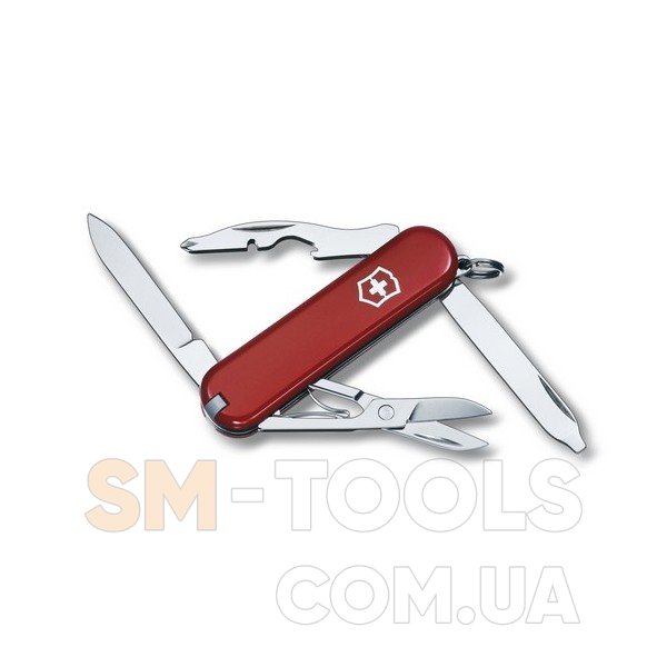 Особенностью Victorinox Rambler Vx06363 является магнитная отвёртка, которая позволяет быстро и легко к примеру закрутить или открутить винты или шурупы, а главное даже в самых труднодоступных местах. Поэтому, данная модель станет отличным подарком для сильной половины человечества. Плюс, швейцарский нож изготовлен с красивой ярко-красной рукояткой, что делает модель более презентабельной. Уникальный дизайн дополняет лёгкий вес с компактным размером. Отдельно стоит отметить и многофункциональность Victorinox Rambler Vx06363. Ведь, складной нож, кроме магнитной отвёртки содержит и крестовую. А так же маленький клинок длинной – 58 мм., который каждого мужчину выручит в необходимых ситуациях. Отлично дополняют данную модель: открывалка для бутылок, пинцет, ножницы и зубочистка.