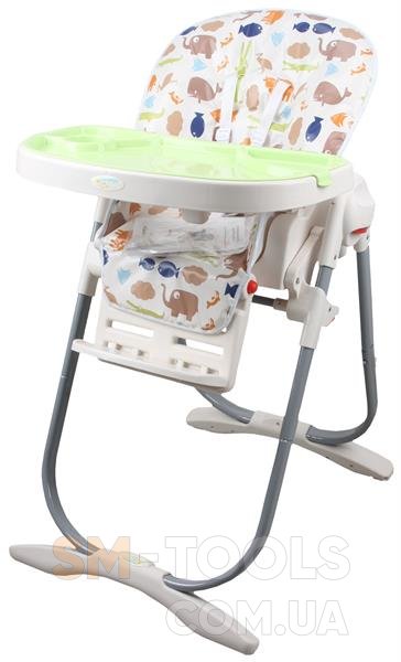 Классический дизайн. Два задних колесика для удобного перемещения. Удобная столешница и съемный поднос с бортиками. Регулируемая подставка для ног. Регулируемая спинка - 3 положения. Регулировка стульчика по высоте - 5 положений. Легко складывается, занимает мало места при хранении.