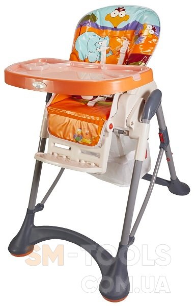 Современный дизайн. Два задних колесика для удобного перемещения. Столешница с углублением для чашки, бортиками и съемным подносом. Регулируемая подставка для ног. Регулируемая спинка - 4 положения. Большая корзина для игрушек. Регулировка стульчика по высоте - 5 положений. Легко складывается, занимает мало места при хранении. Мягкая съемная моющая обивка. Анатомическая вставка для ножек. Пятиточечные ремни безопасности.