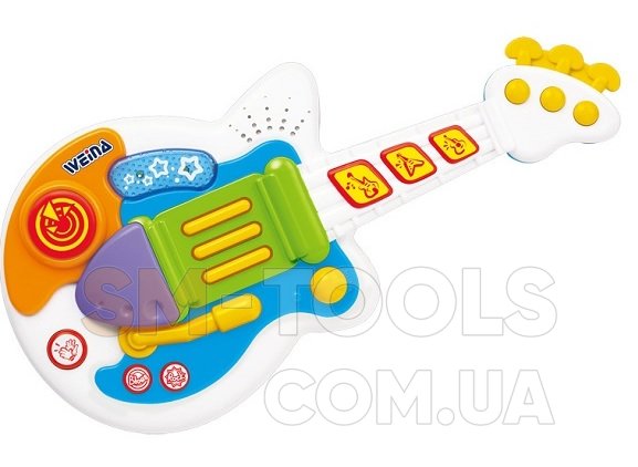 Эта рок-гитара создана для начинающих музыкантов, для тех, кто хочет стать рок звездой. Гитара поможет начинающему гитаристу выбрать свой стиль - рок, блюз; даст возможность попробовать различные спец. эффекты. Нажимая кнопки, малыш услышит различные мелодии; юный артист сможет выступить перед родными и стать "гвоздем программы" домашнего праздника, а после выступления его ждут бурные овации от поклонников. Поощряйте юного исполнителя, подпевая ему в такт музыки, это доставит еще большое удовольствие ребенку. Гитара - это личный способ познакомить вашего малыша с музыкальными инструментами. Игрушка поможет вашему ребенку развить музыкальный слух и чувство ритма, а также навыки мелкой моторики. Гитара предназначена для детей старше 12 месяцев.