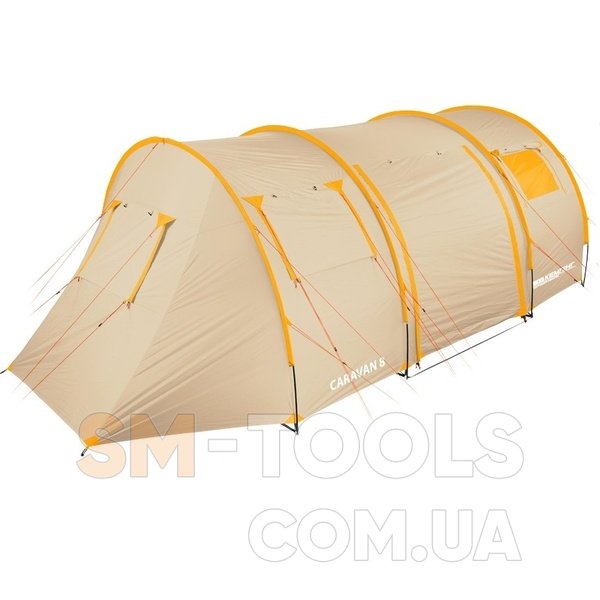 Восьмиместная кемпинговая палатка Caravan 8+. Большая удобная палатка с большим вместительным тамбуром. Имеет широкий удобный вход.