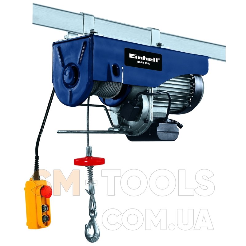 Тельфер или таль электрическая EINHELL BT-EH 1000 обеспечивает высокую производительность за счёт прочной сборки комплектующих. Здесь и надёжный грузовой крюк со шкивом и дополнительной защёлкой безопасности, также в наличии электрический пульт управления. Автоматический тормоз троса обеспечивает безопасность груза в любом положении. Все характеристики в этой модели, несмотря на то, что "мейд ин Чайна", соответствуют требованиям мировых стандартов грузоподъёмного оборудования. Можно ещё отметить, что по сравнению с аналогичными моделями европейских именитых брендов EINHELL значительно дешевле.