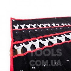 INTERTOOL HT-1200 — это набор из 25 комбинированных ключей, каждый из которых представляет собой сочетание рожкового и накидного гаечного ключа. Размерная линейка набора — от 6 до 32 мм. Обе стороны ключей имеют одинаковый размер головки. Широкий выбор размеров позволит подобрать наиболее удобный вариант в каждом конкретном случае. Ключи изготовлены из хром-ванадиевой стали. Ÿ физические и химические свойства обуславливают высокую устойчивость к механическим нагрузкам, коррозионную стойкость и твердость. Кроме того, эта легированная сталь обладает благоприятным модулем упругости. Удобная форма и изгиб рукоятки ключа обеспечивают оптимальные условия для приложения усилия, благодаря чему легко можно закрутить/открутить крепежный элемент. Ключи поставляются в удобном сворачивающемся чехле с кармашками под ключ каждого размера.