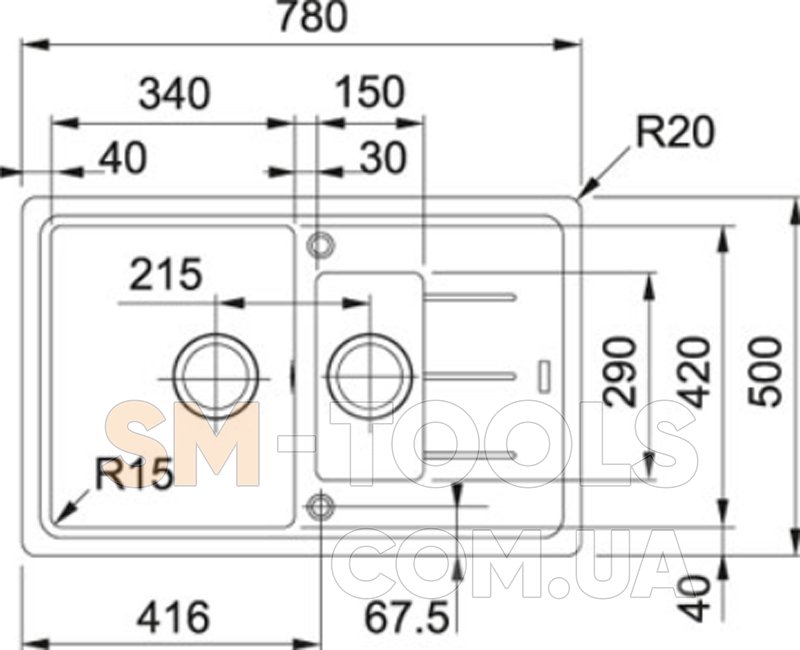 Габариты мойки (ШхГхВ): 78х50х20,5 см